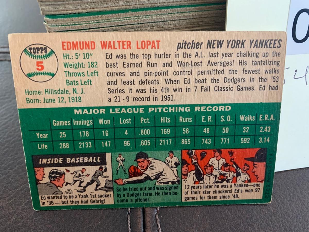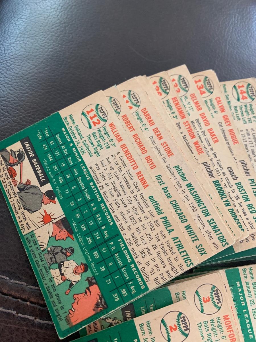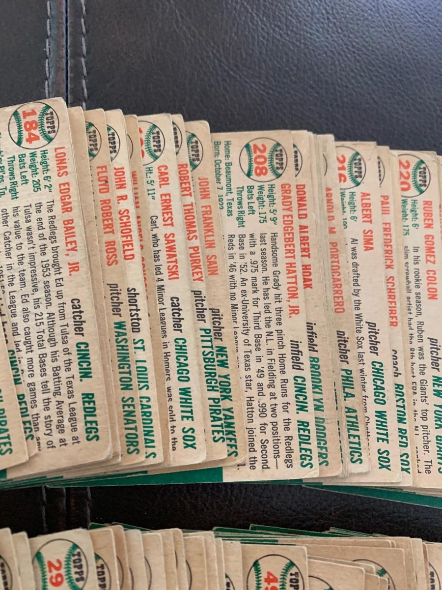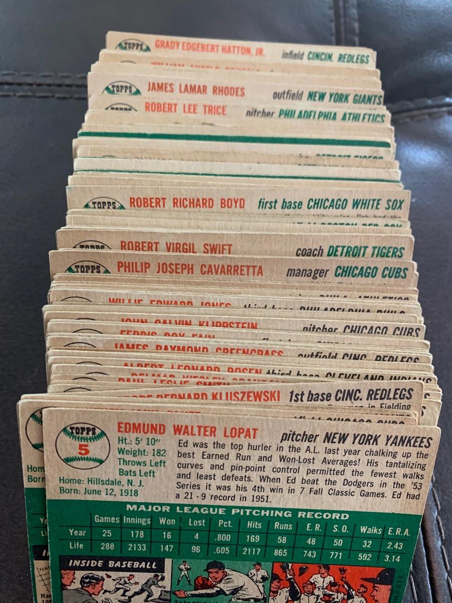Nice near run of 1954 Topps but absent of the “key cards”. All are in good but definitely not mint condition.