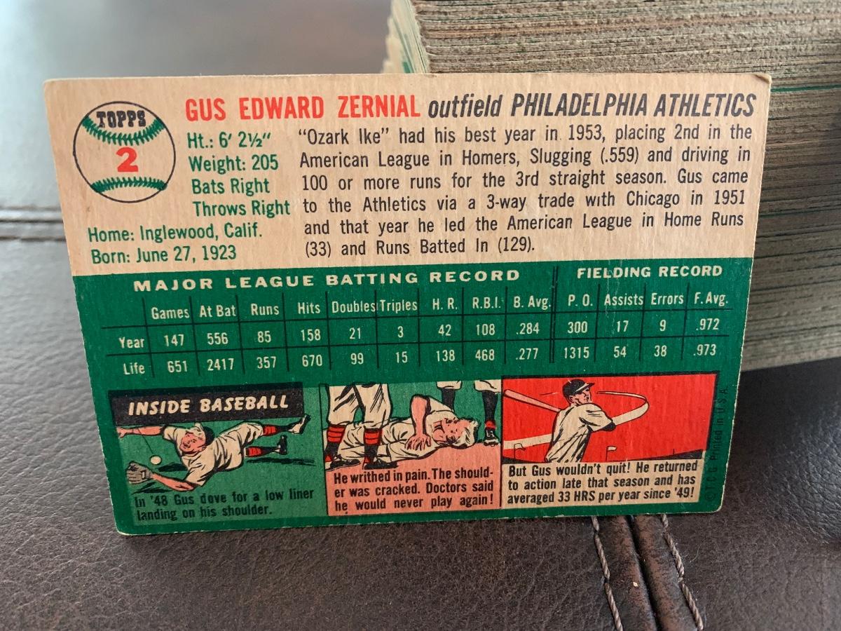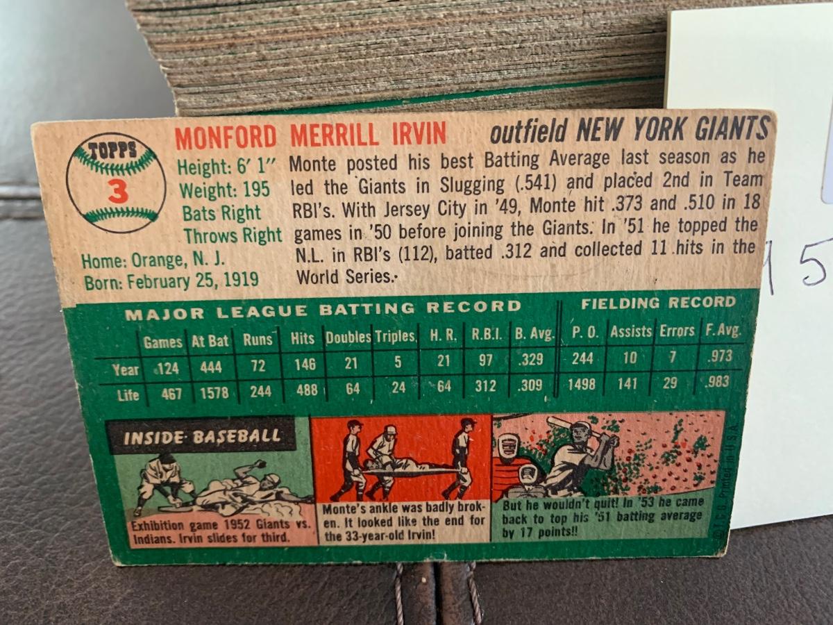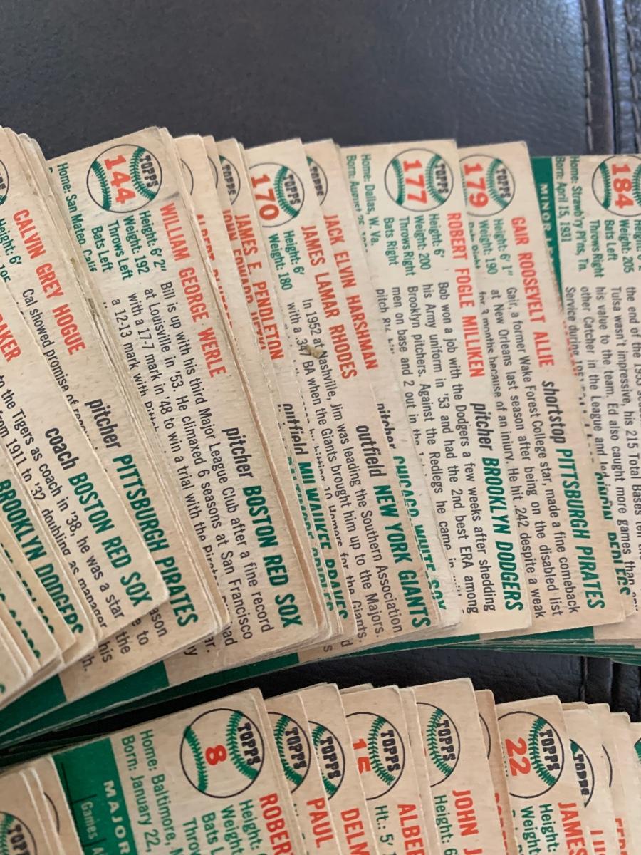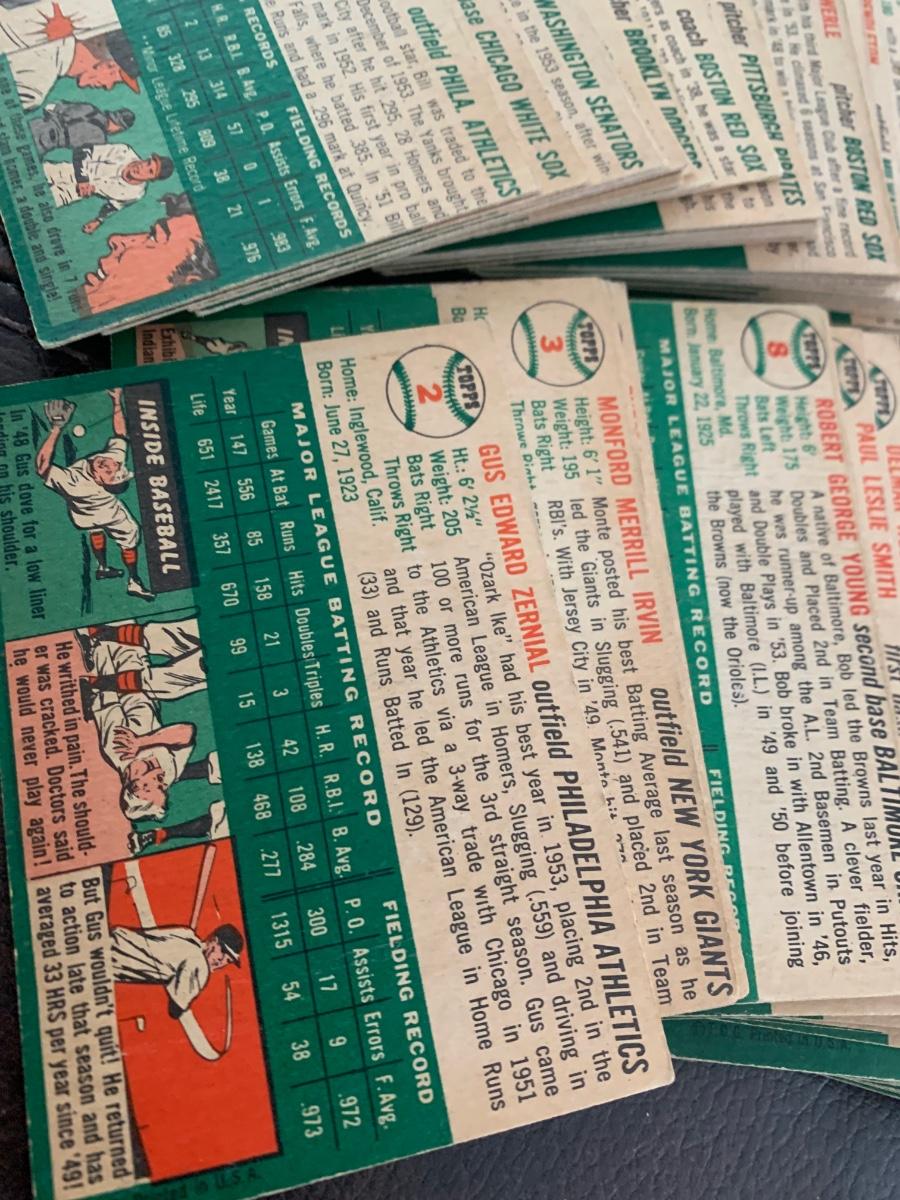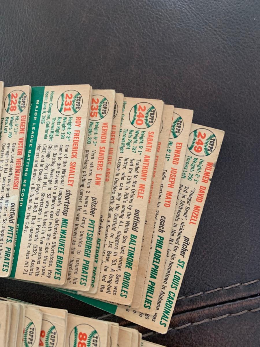 Nice near run of 1954 Topps but absent of the “key cards”. All are in good but definitely not mint condition.