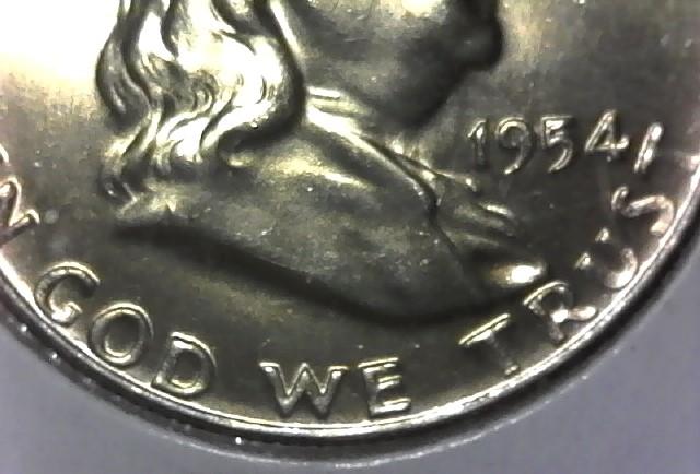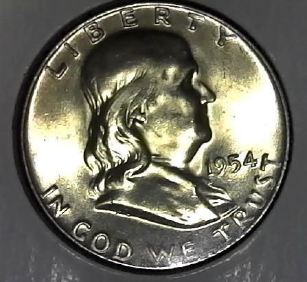 1954-D Franklin Silver Half Dollar Possible AU Quality obverse has clean profile with some minor toning but great pinwheel effect. Reverse is equally satisfying with terrific luster and crisp high edges.