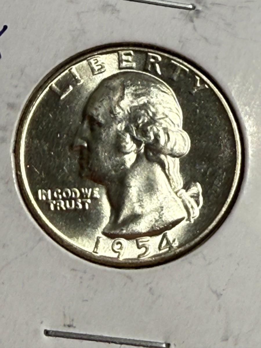 1954-P UNCIRCULATED CONDITION WASHINGTON SILVER QUARTER AS PICTURED. $5 DOMESTIC SHIPPING.