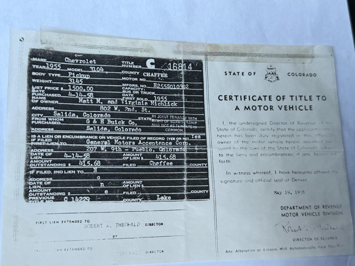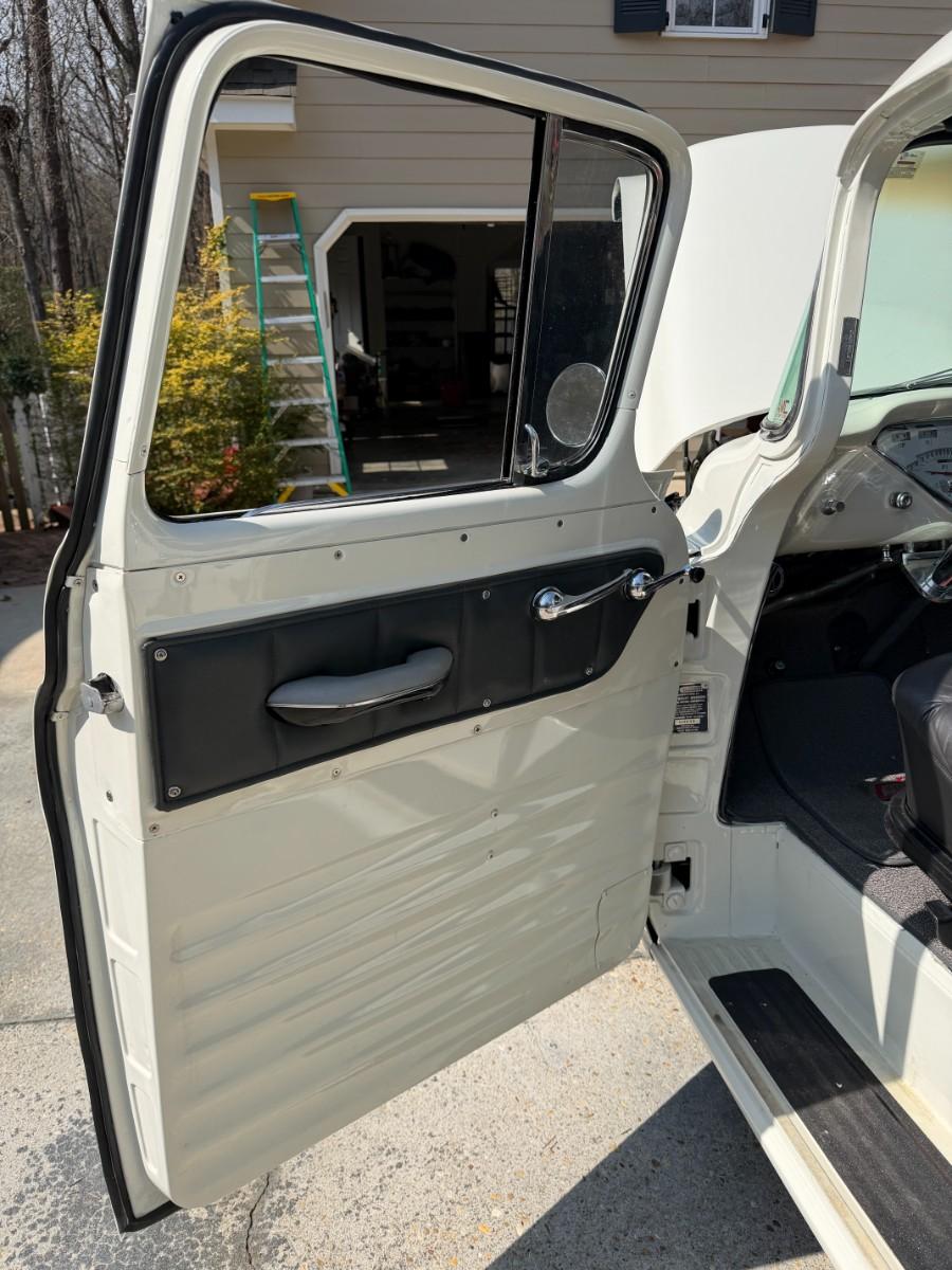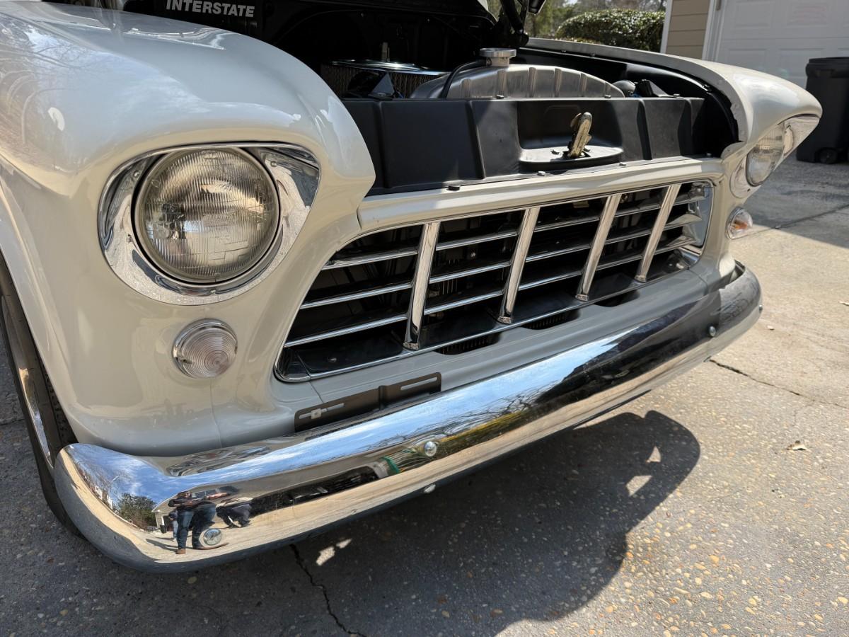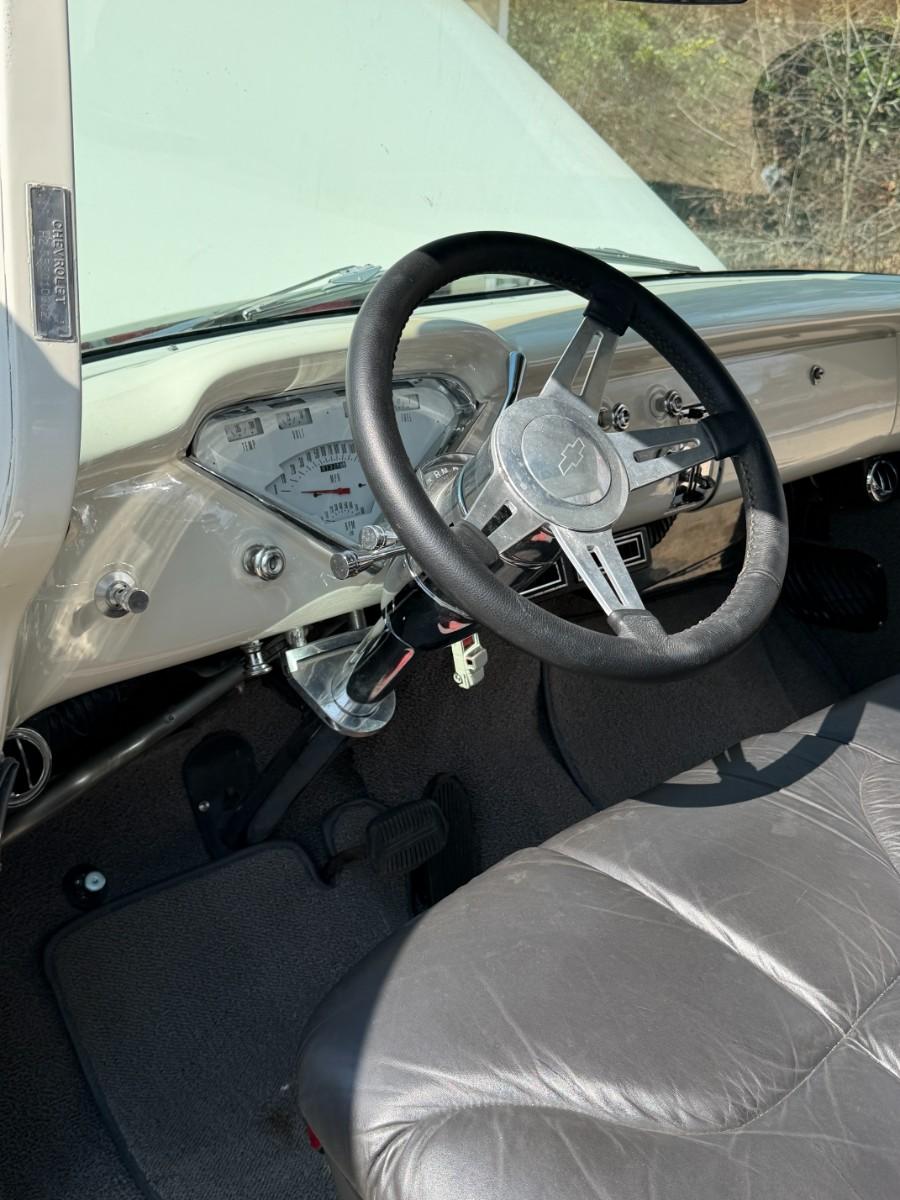 We have a fully restored 55 Truck for sale. Please see pictures as there is an original Title pictured. Truck was 100% restored from top to bottom by a business and not the owner. From rear end, decking, you name it, its restored. Vintage air has also been added. Truck can be seen in person during our upcoming estate sale on February 26th - 28th. We will have it available by appointment only outside of those days. Owner also purchased red interior for the truck, so that will come with the truck as well. There is nothing that has to be done to this truck. You could drive it across the country if you wanted to. The owner has told me a 350 from a 1966 Corvette is what is under the hood.