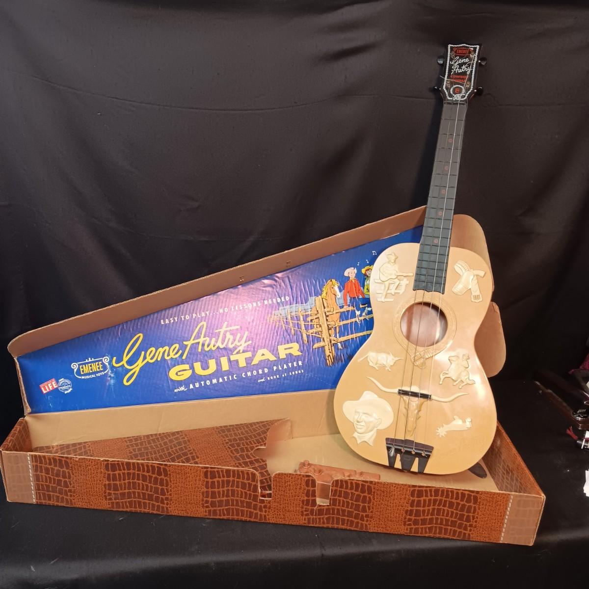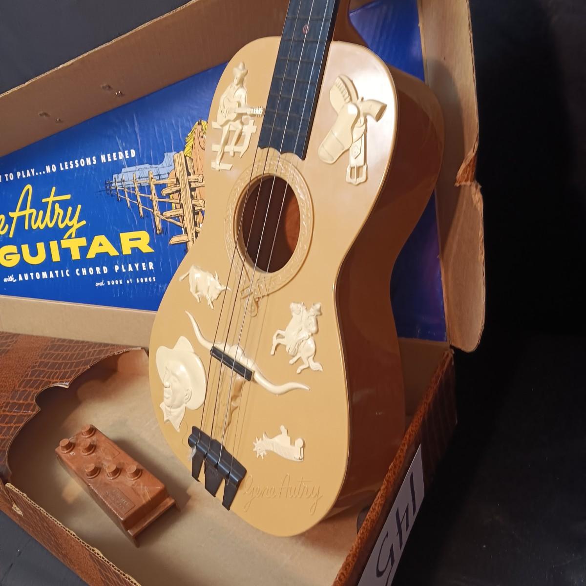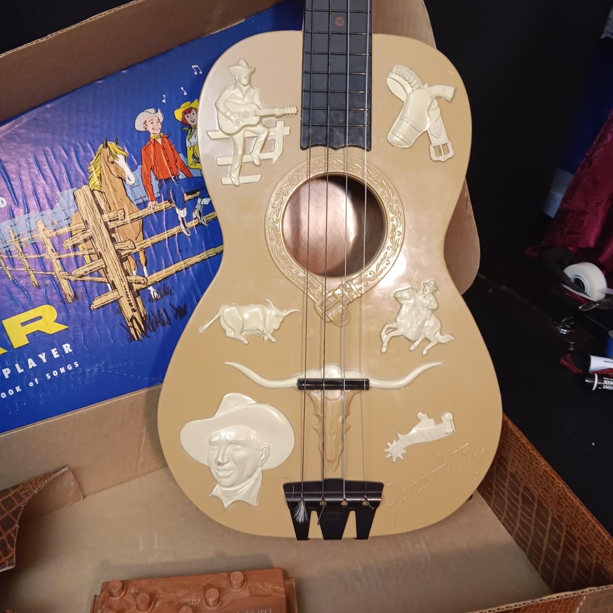 1955 CHILD'S GENE AUTRY BAKELITE GUITAR WITH RAISED DECORATION ON FACE
