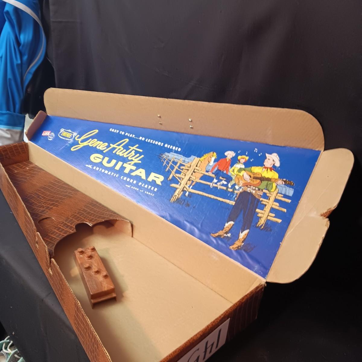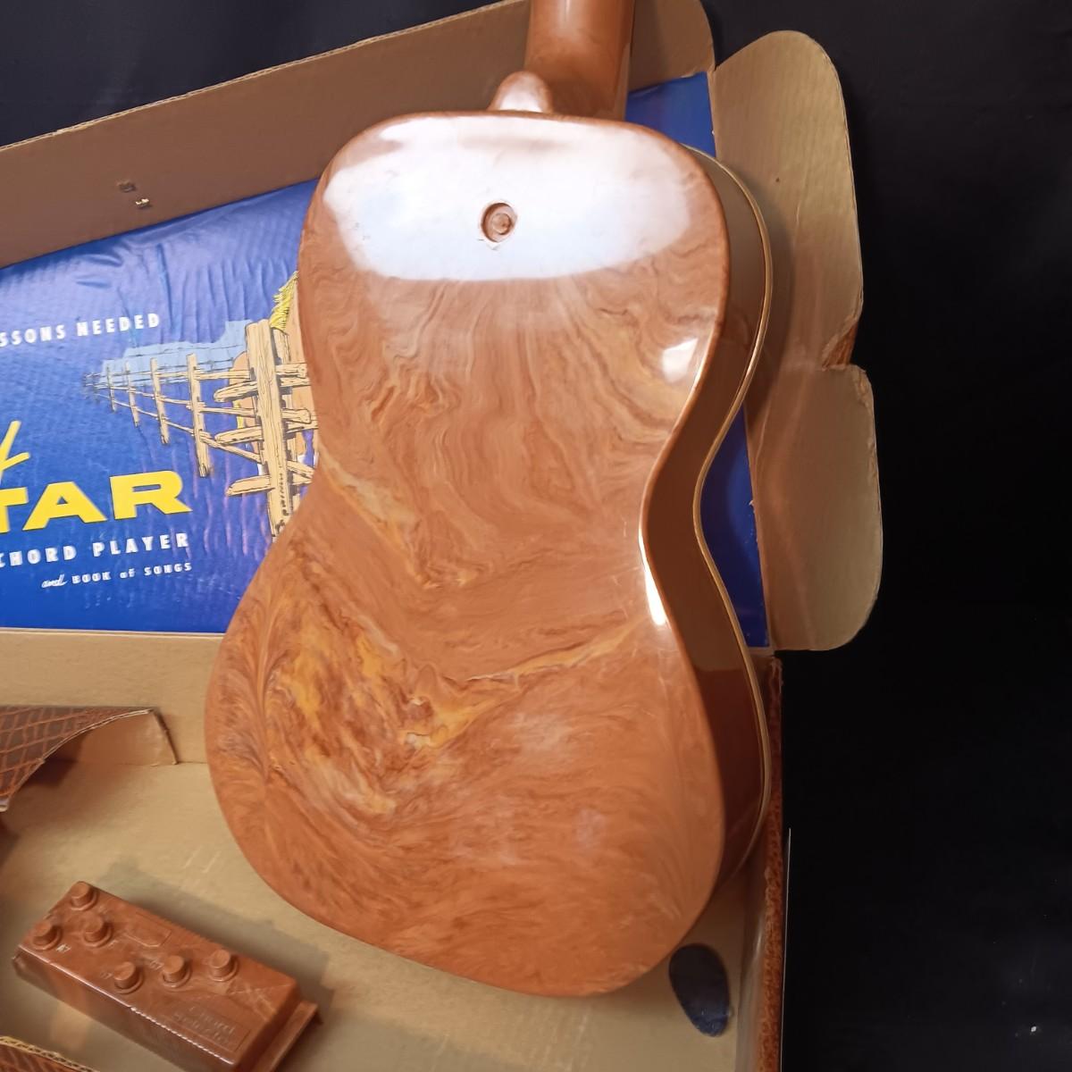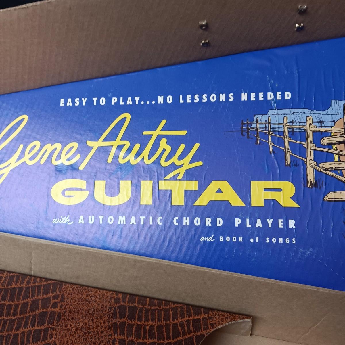 1955 CHILD'S GENE AUTRY BAKELITE GUITAR WITH RAISED DECORATION ON FACE