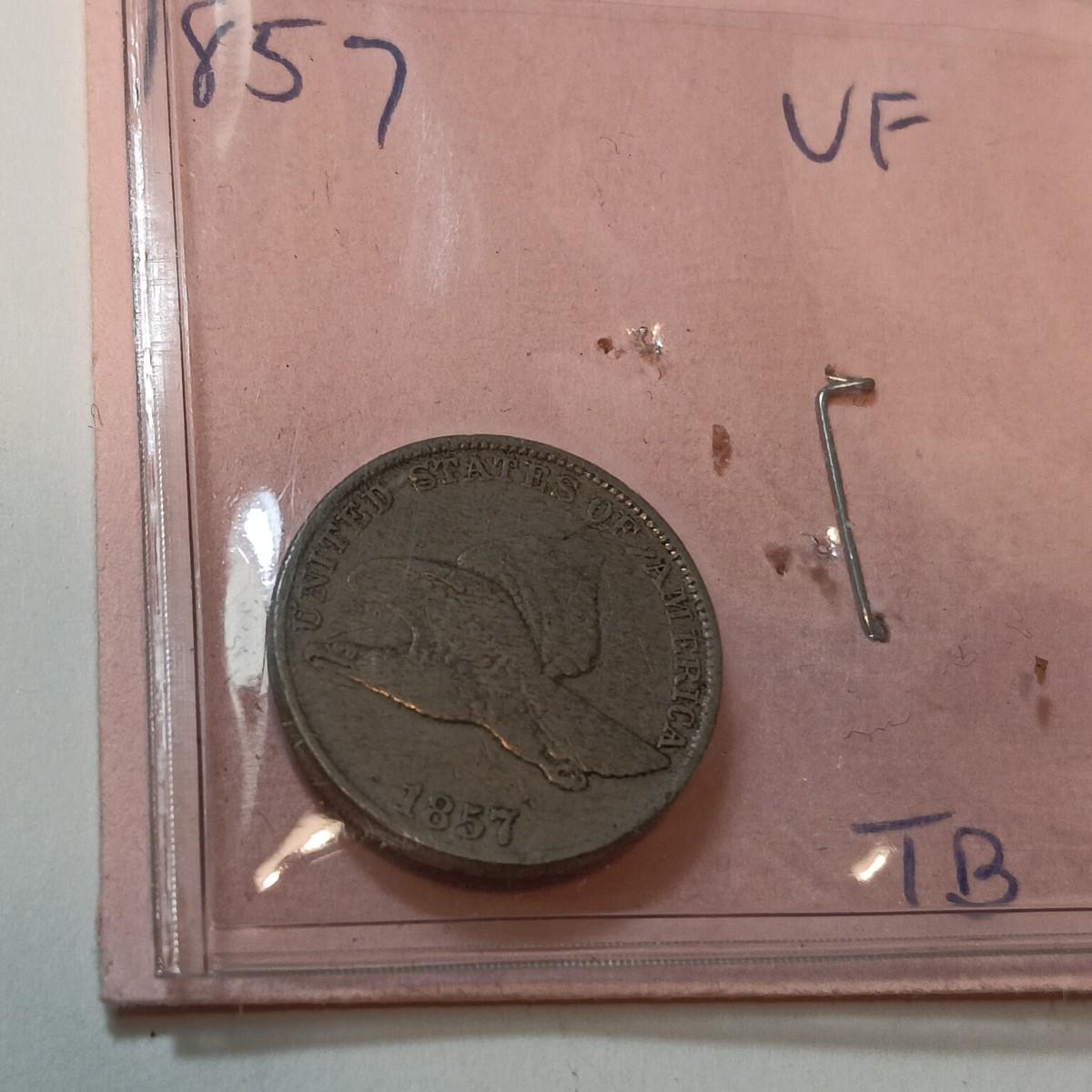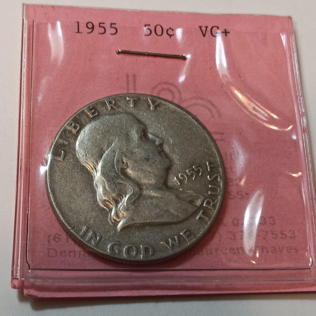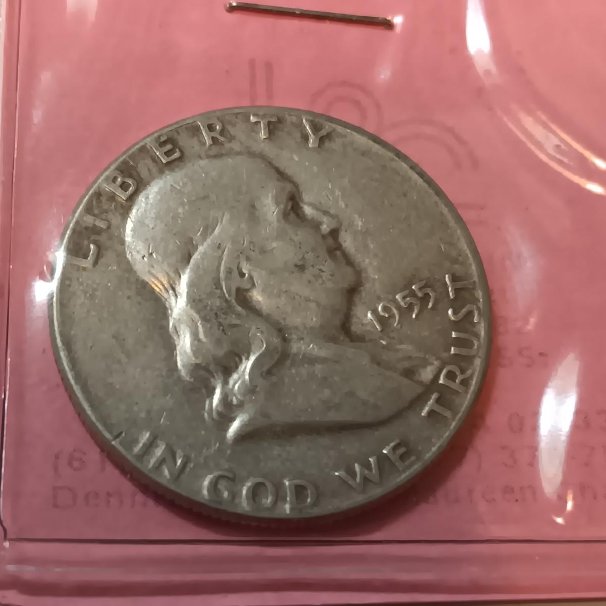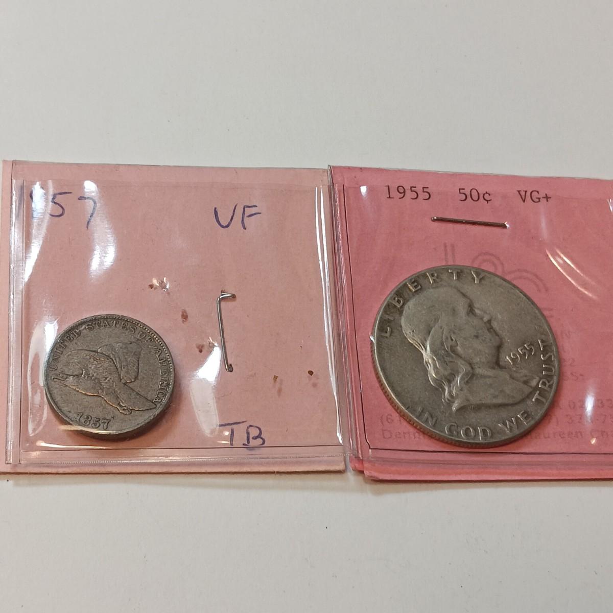 1955 FRANKLIN SILVER HALF DOLLAR & 1857 ONE CENT