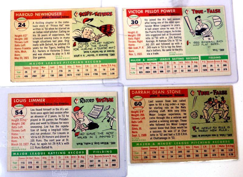 1955 TOPPS Baseball Cards Set #24 #30 #54 #60 Higher Grade Cards Lot