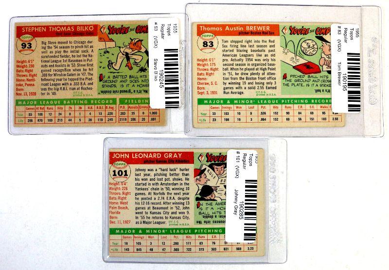 1955 TOPPS BASEBALL CARDS SET - STEVE BILKO Tom Brewer Johnny Gray VGX/EX