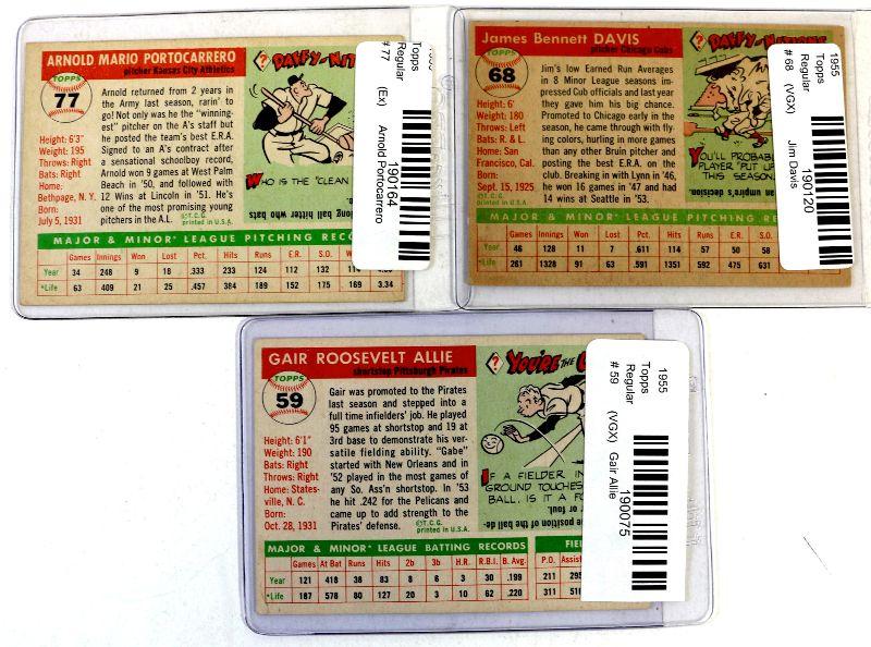 1955 TOPPS BASEBALL CARDS SET - Jim Davis Arnold Portocarrero Gair Allie VGX/EX