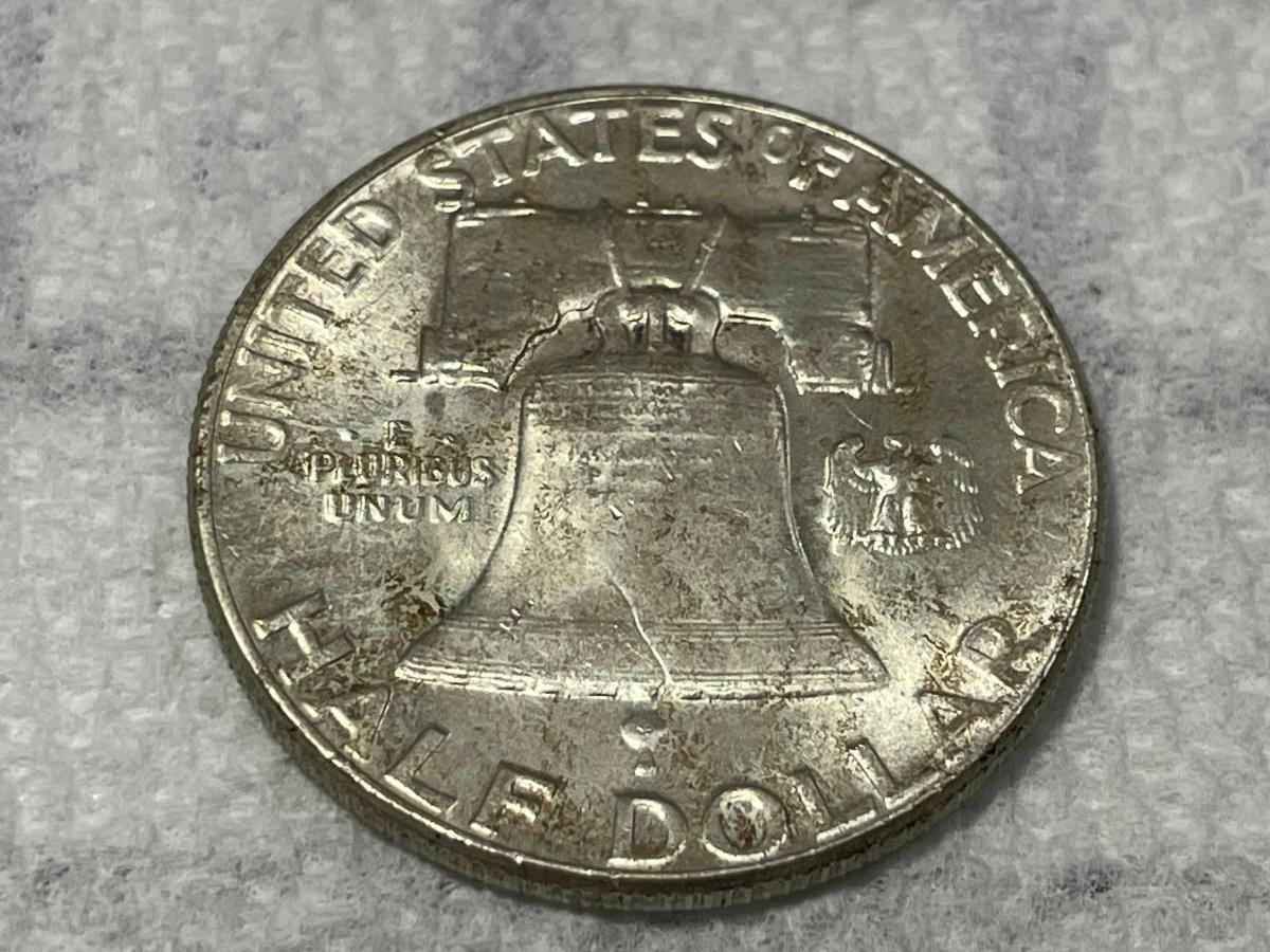 1955 UNCIRCULATED CONDITION TONED "BUGS BUNNY" VARIETY FRANKLIN SILVER HALF DOLLARS AS PICTURED. $5 DOMESTIC SHIPPING.
