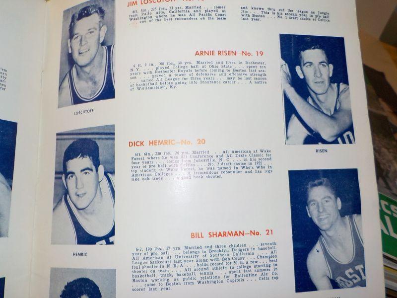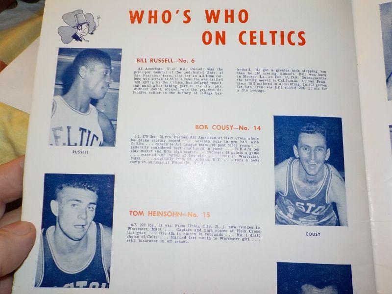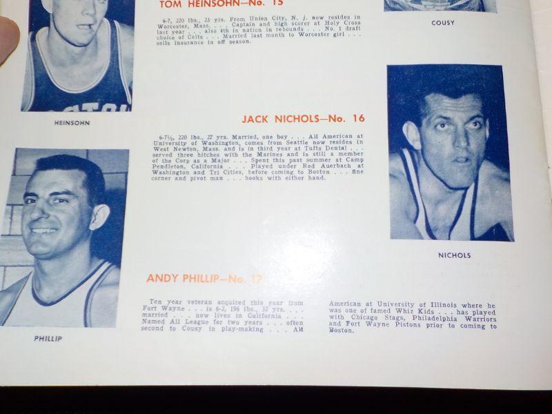 '1956 - 1957 Boston Celtics Basketball season program." " Tom Heinsohn