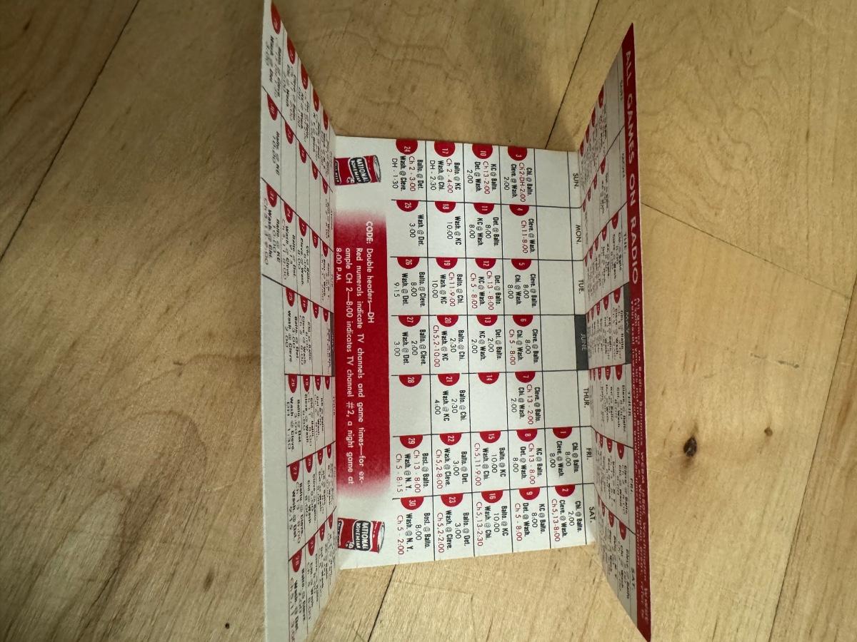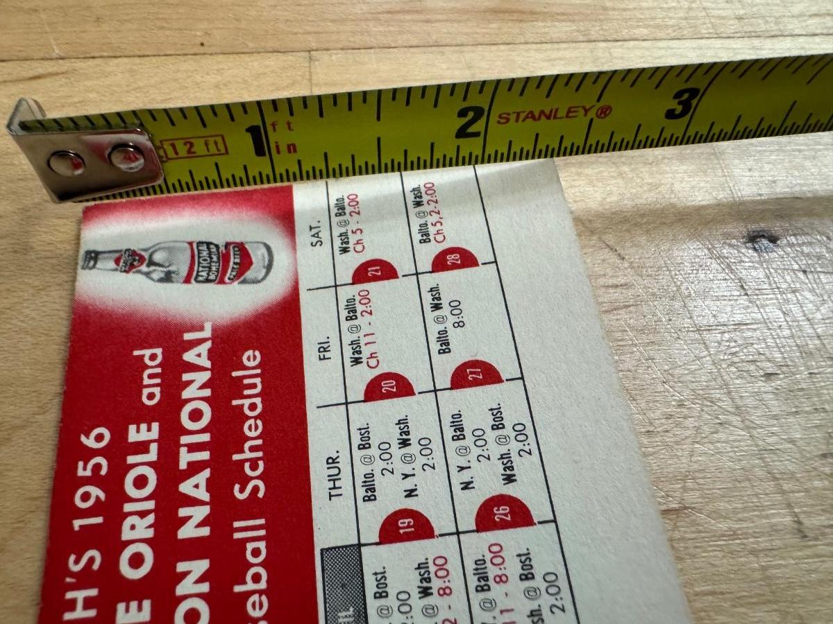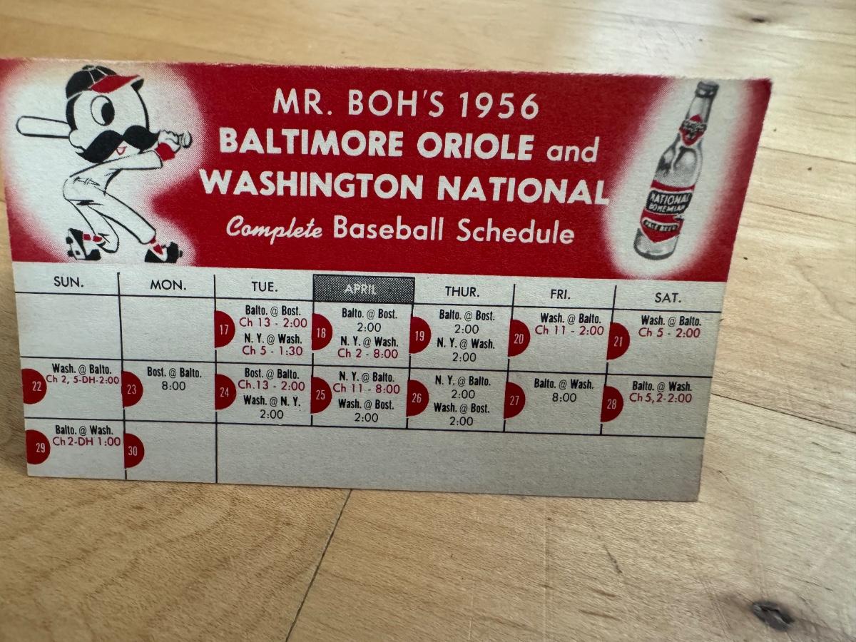 1956 MR. BOH’S Baltimore Oriole & Washington National Complete Baseball Schedule