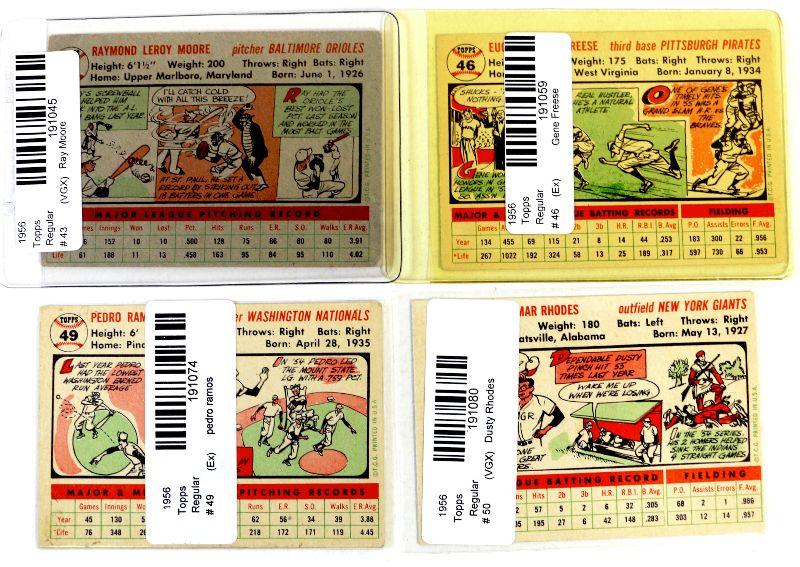 1956 TOPPS BASEBALL CARDS SET OF 4 - #43 #46 #49 #50 - EX - VGX