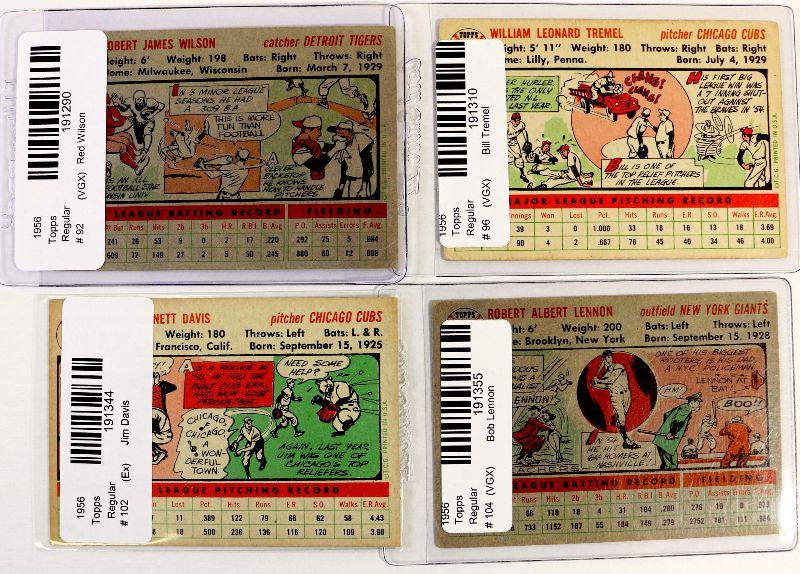 1956 TOPPS BASEBALL CARDS SET OF 4 - #92 #96 #102 #104 - EX - VGX