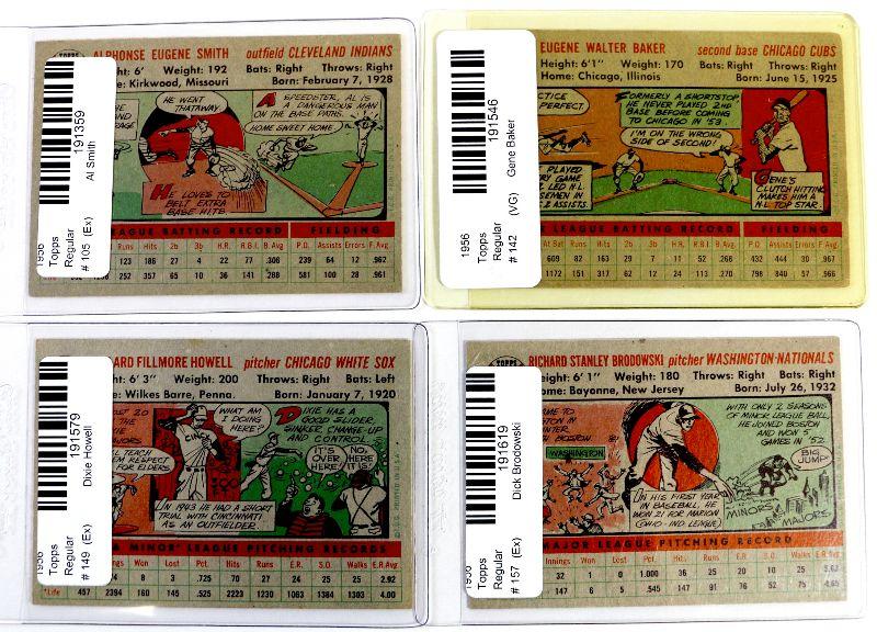 1956 TOPPS BASEBALL CARDS SET OF 4 - #105 #142 #149 #157 - VG - EX