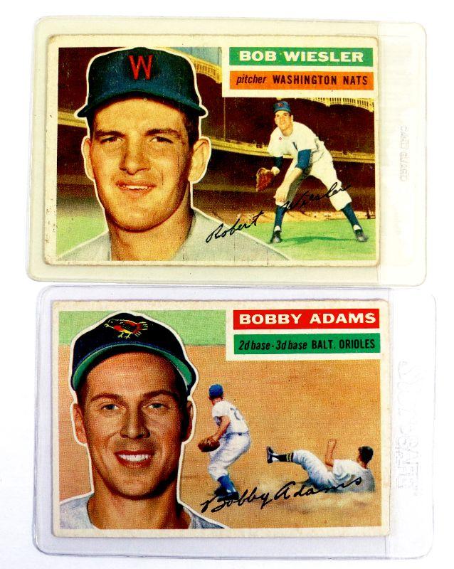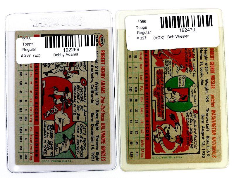 1956 TOPPS BASEBALL CARDS SET OF 2 - #287 Bobby Adams #327 Bob Wiesler - EX - VGX