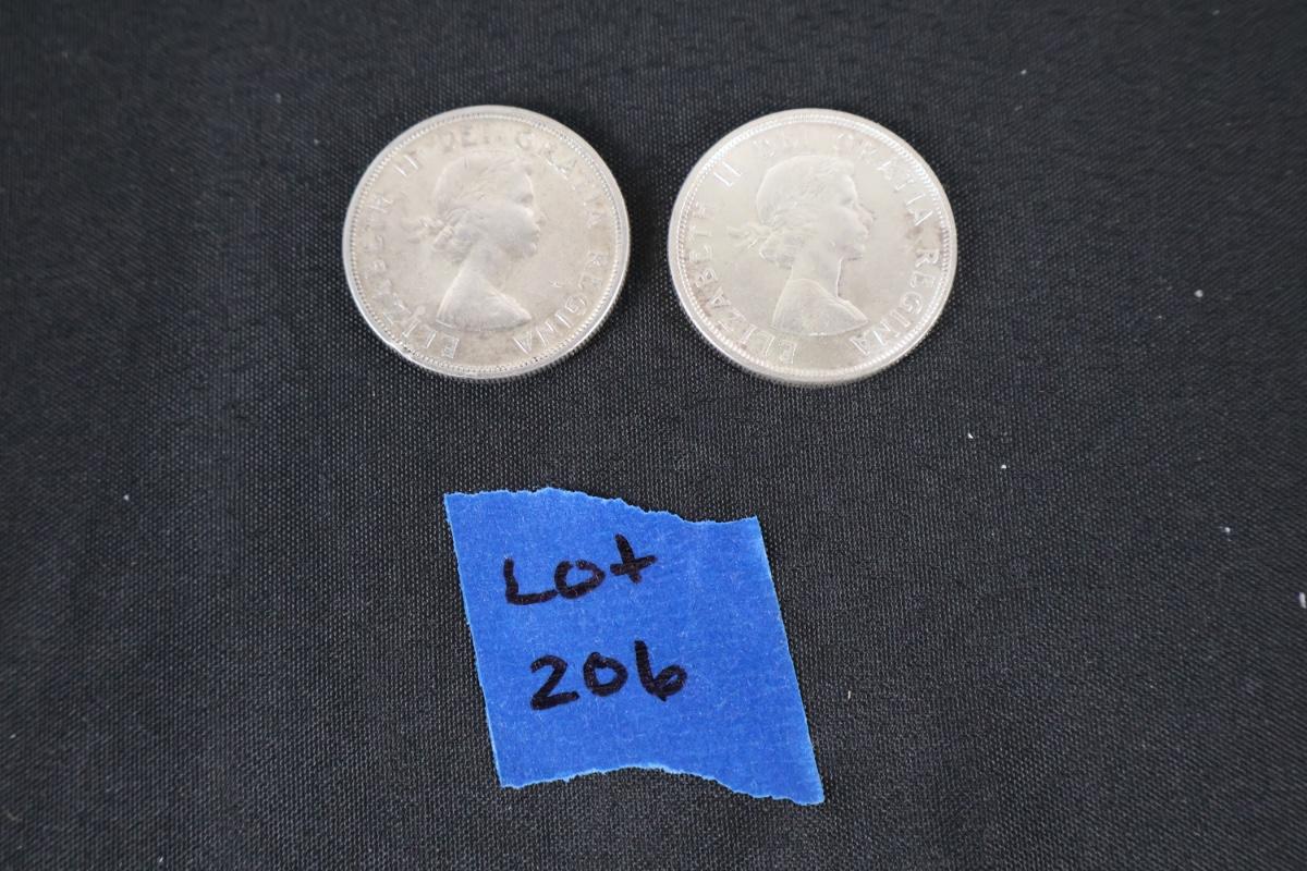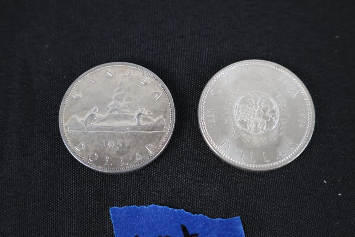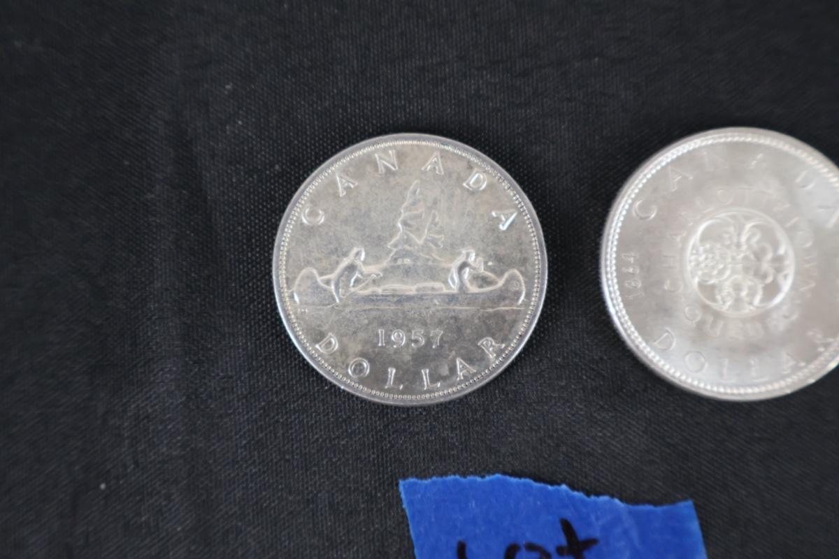 1957 & 1964 Canadian Silver Dollar Coins (2)