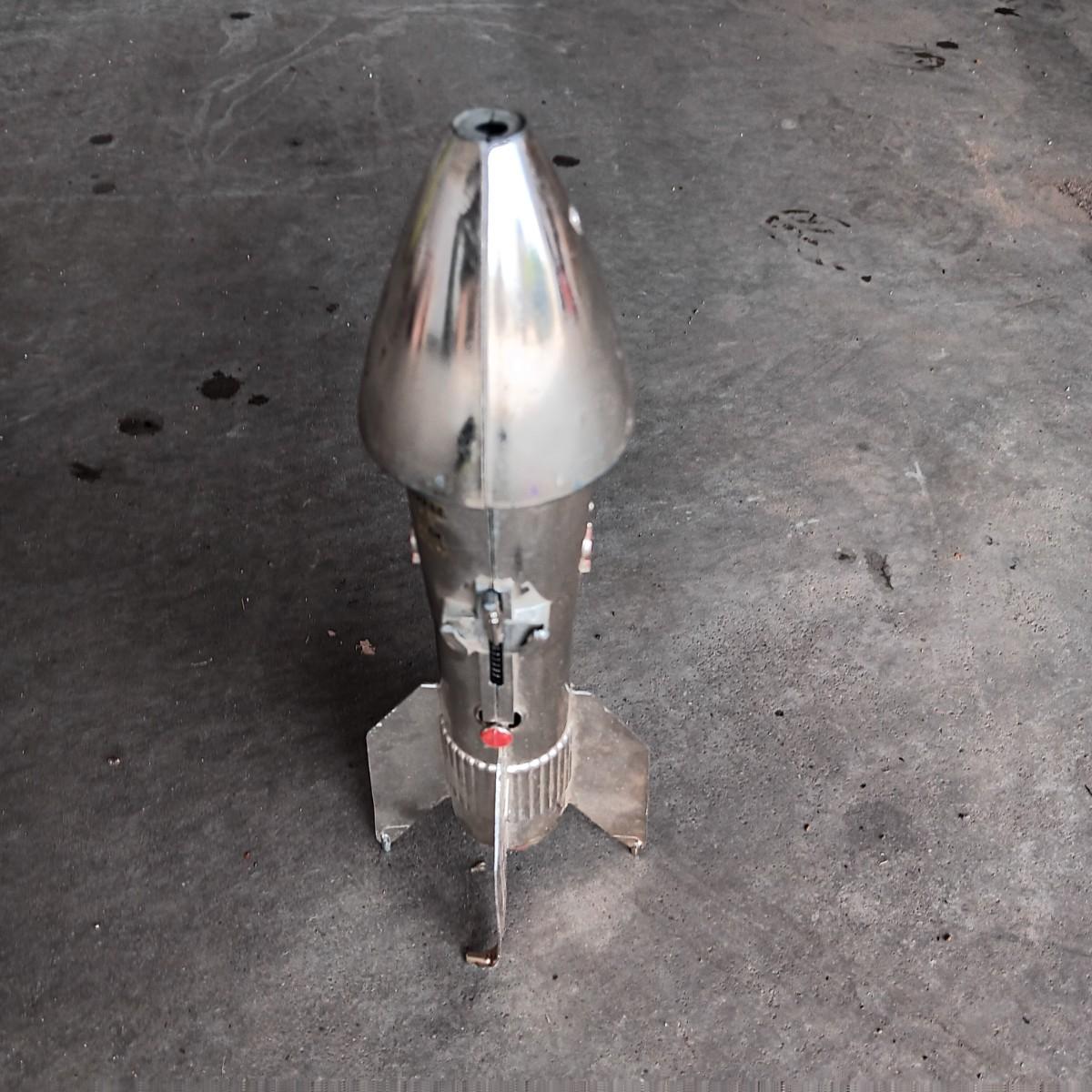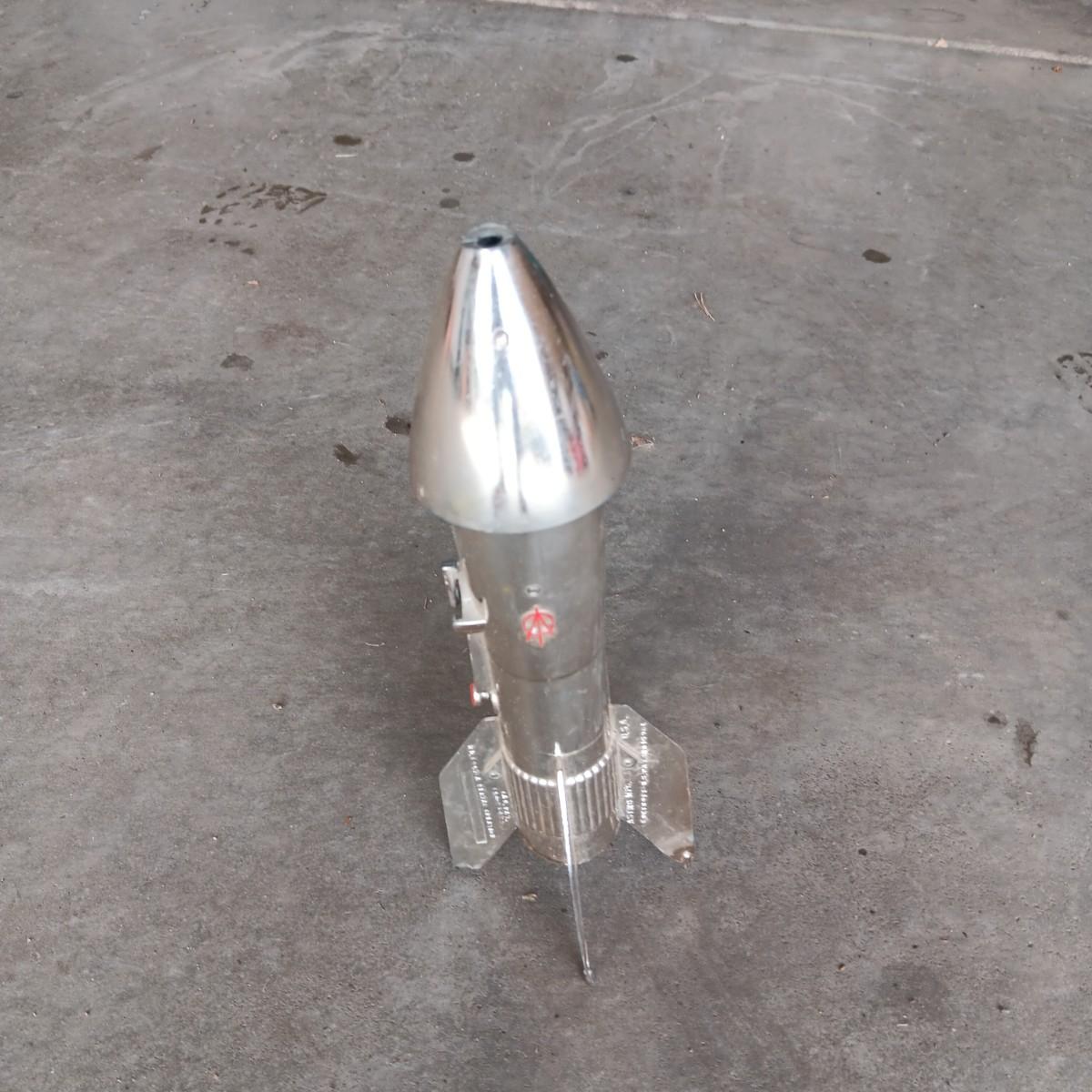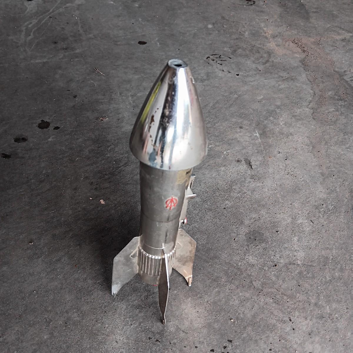 1957 ASTRO MFG BERZAC GUIDED MISSILE ROCKET TOY BANK (coins included, no key)