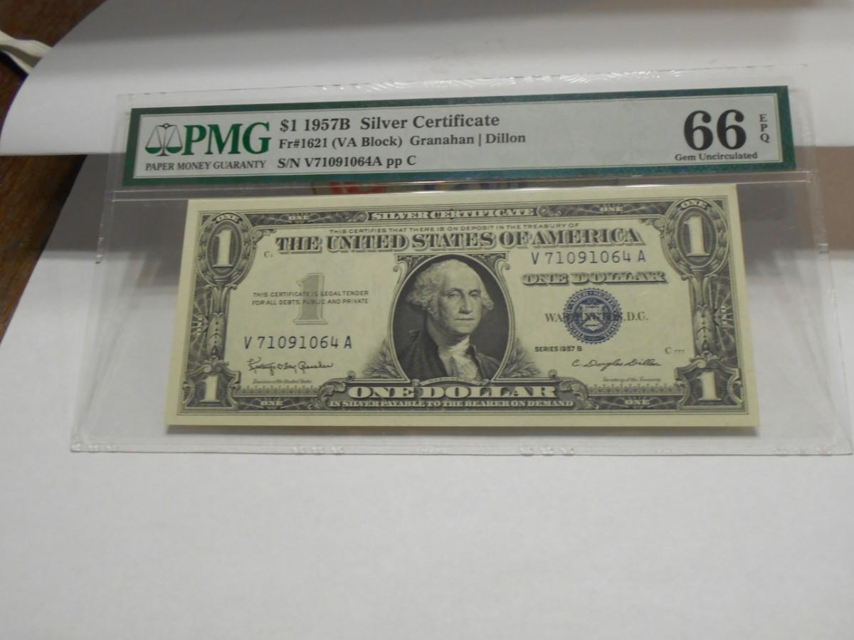 1957 B One Dollar Silver Certificate Graded 66 EPQ