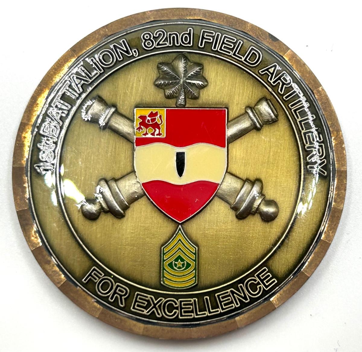 Large, heavy metal award for 1st battalion 82nd Field Artillery Excellence.
