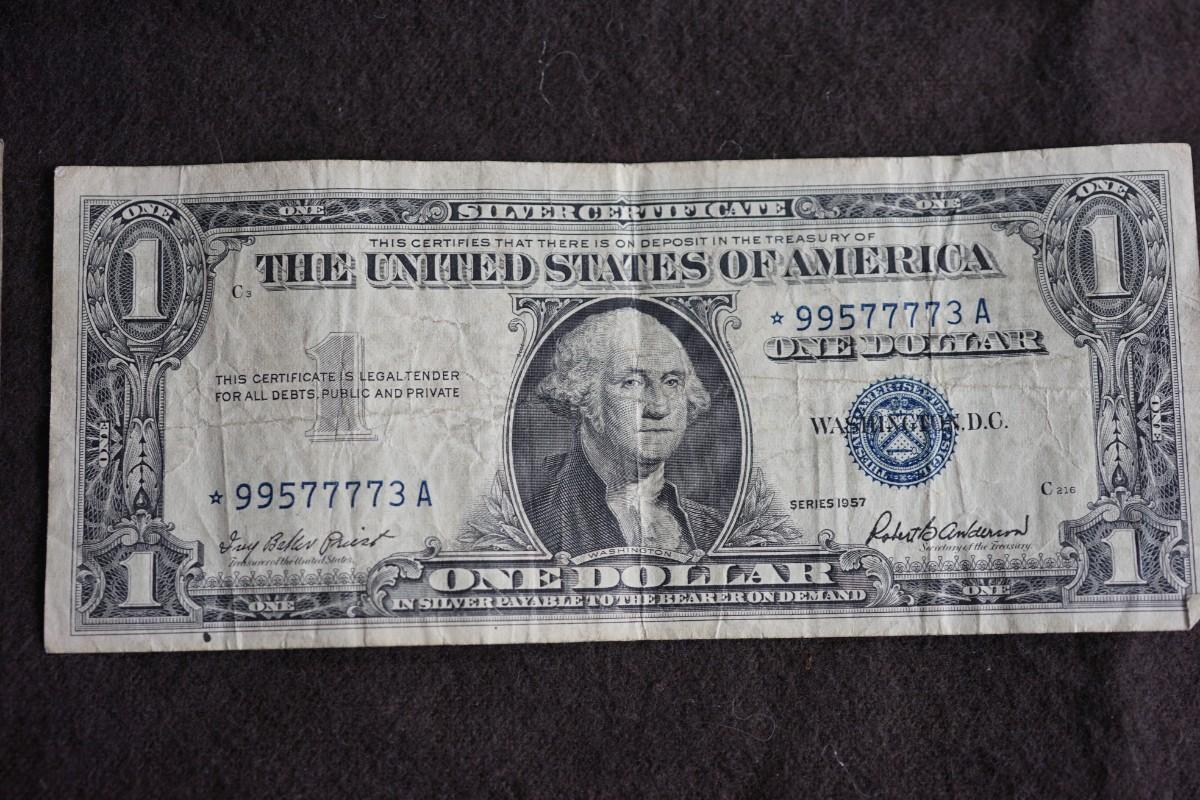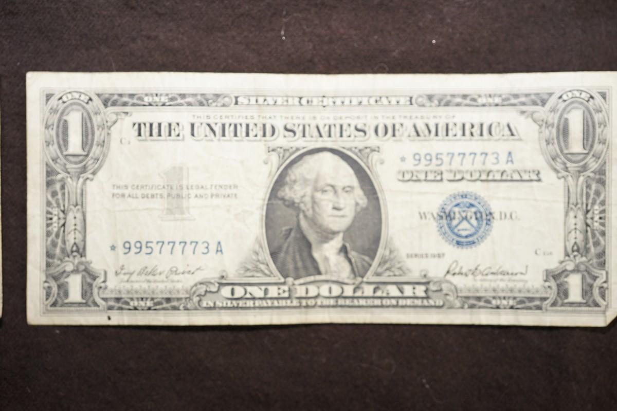 1957 SILVER CERTIFICATE DOLLAR TWO STAR SERIAL NUMBERS (PAIR)
