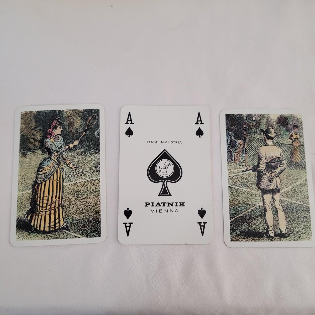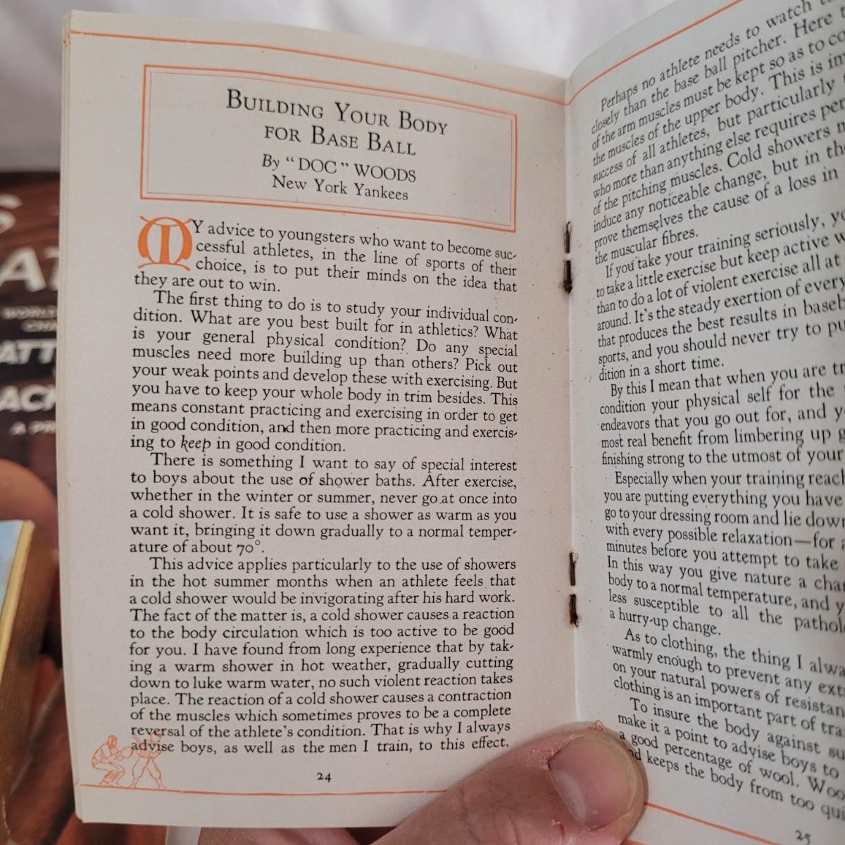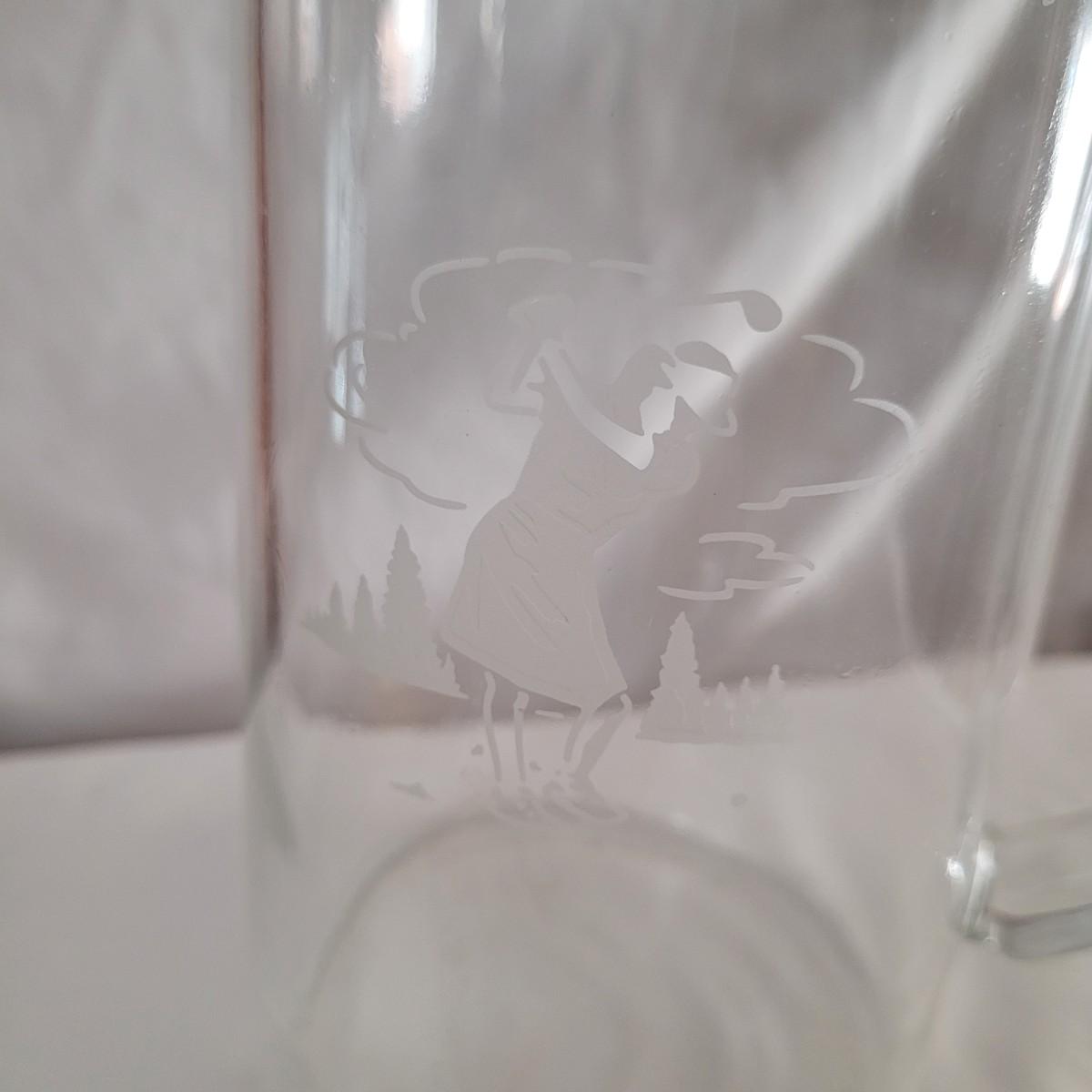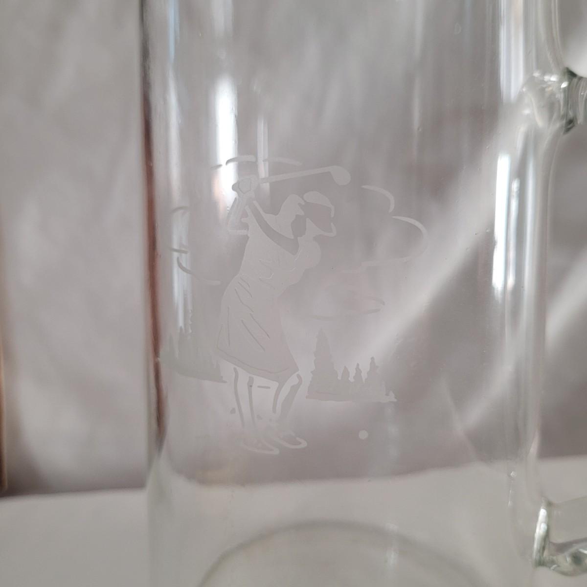 This collection of vintage sports memorabilia includes a 1957 SI magazine, tennis playing cards, an athletic training manual, and a golf themed glass pitcher. Pitcher measures approximately 3.5”D x 8”H. Shipping available.
