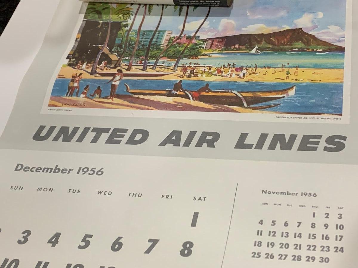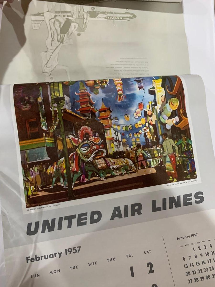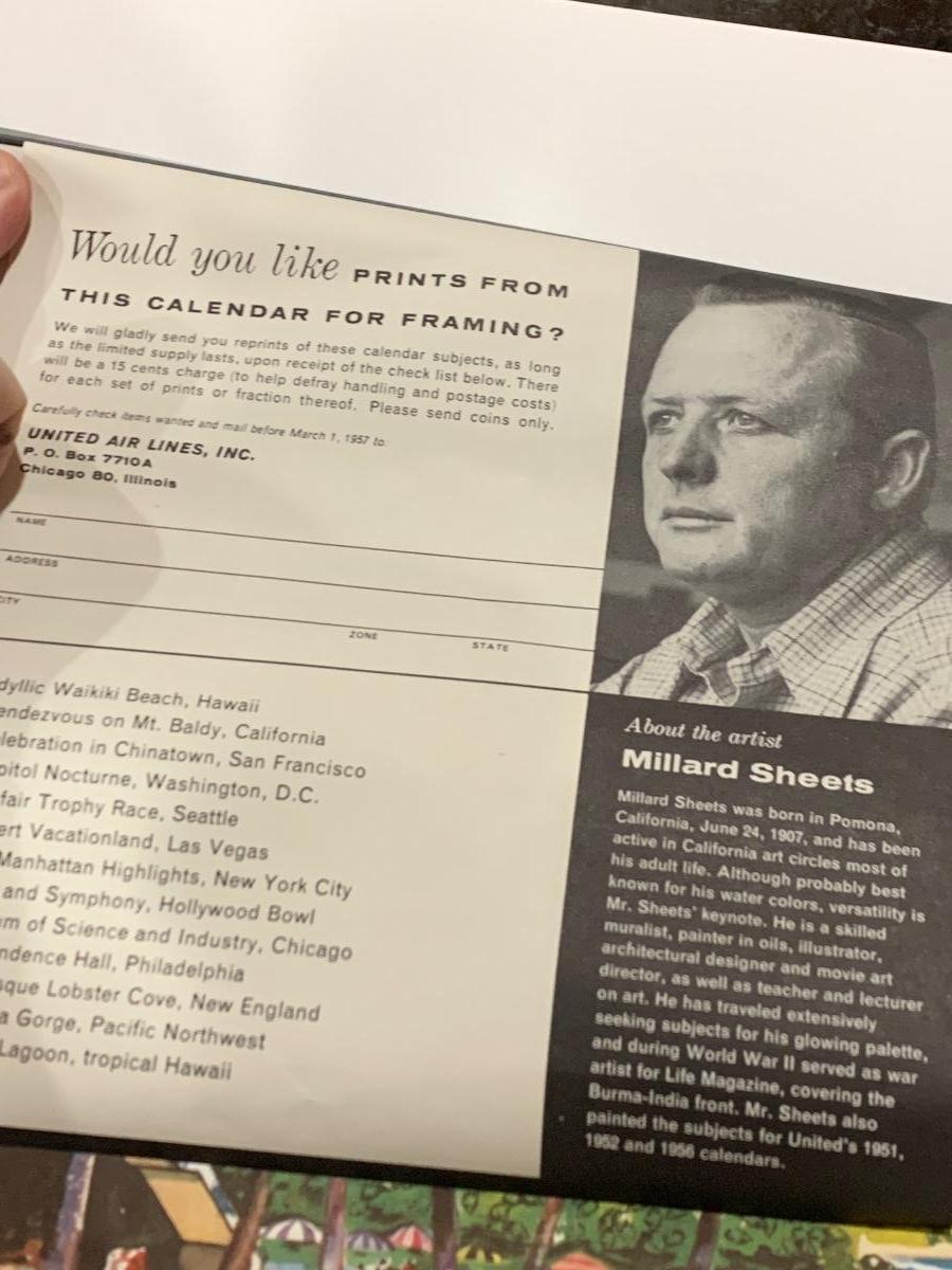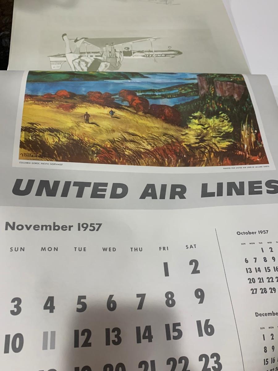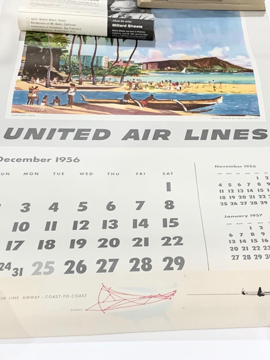 1957 United Airlines Calendar Vintage Millard Sheets Watercolor Landscape Prints