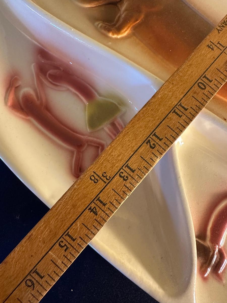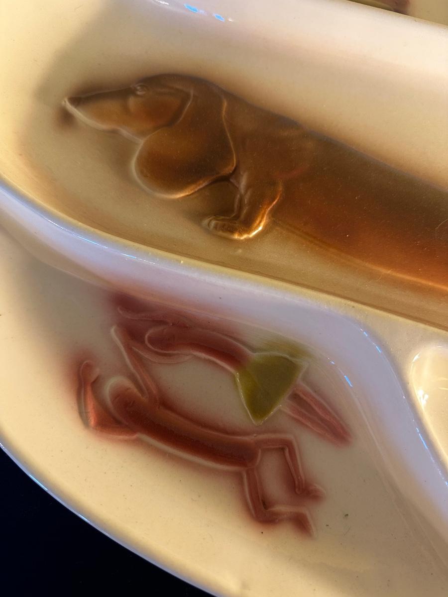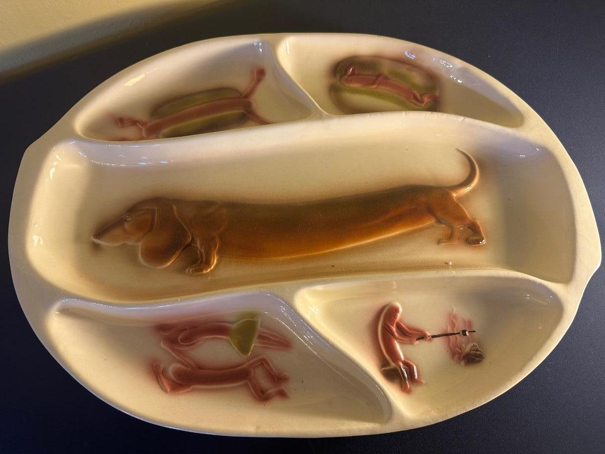 1958 LANE AND CO HOTDOG PLATTER WITH DACHSHUND 20X15 CALIFORNIA USA