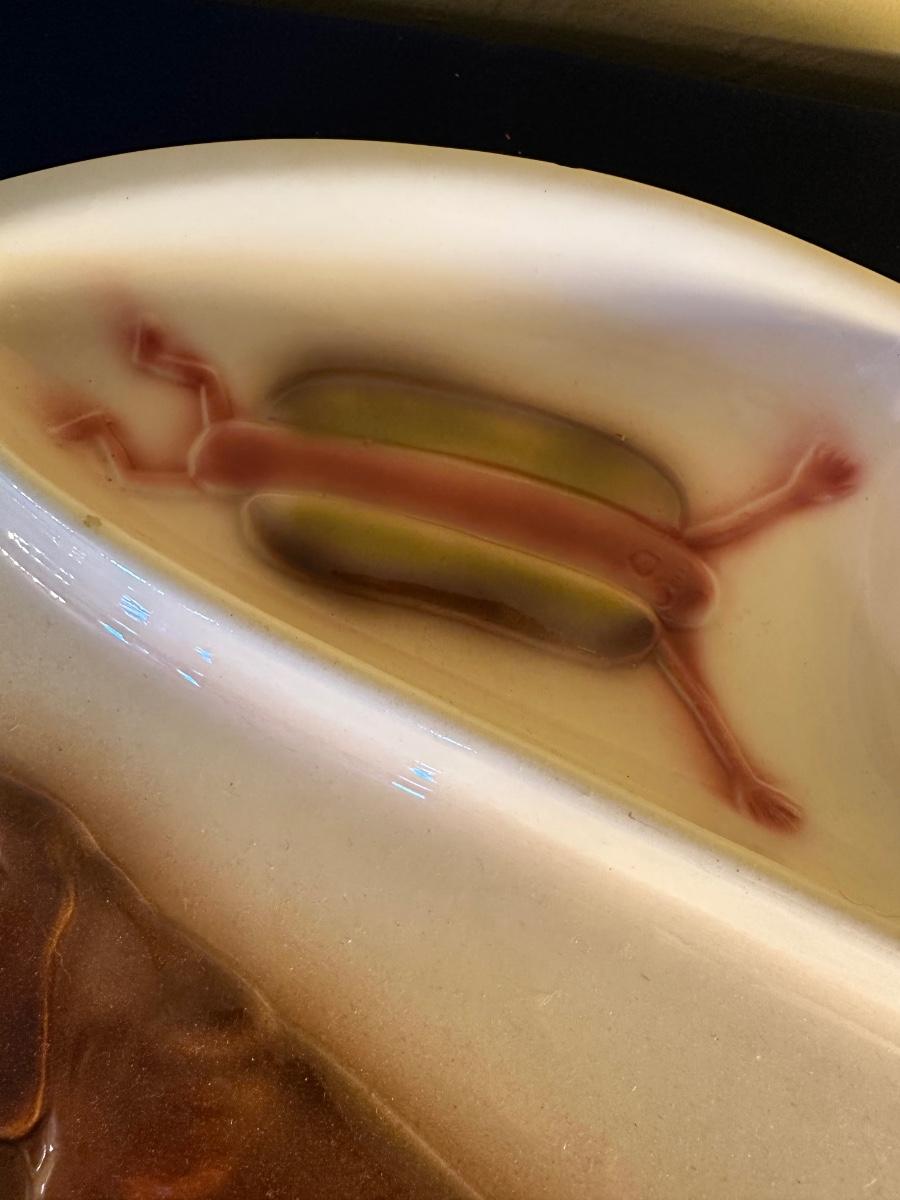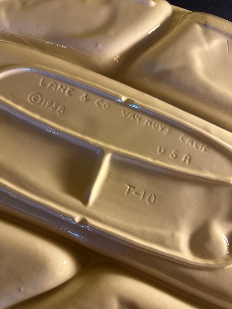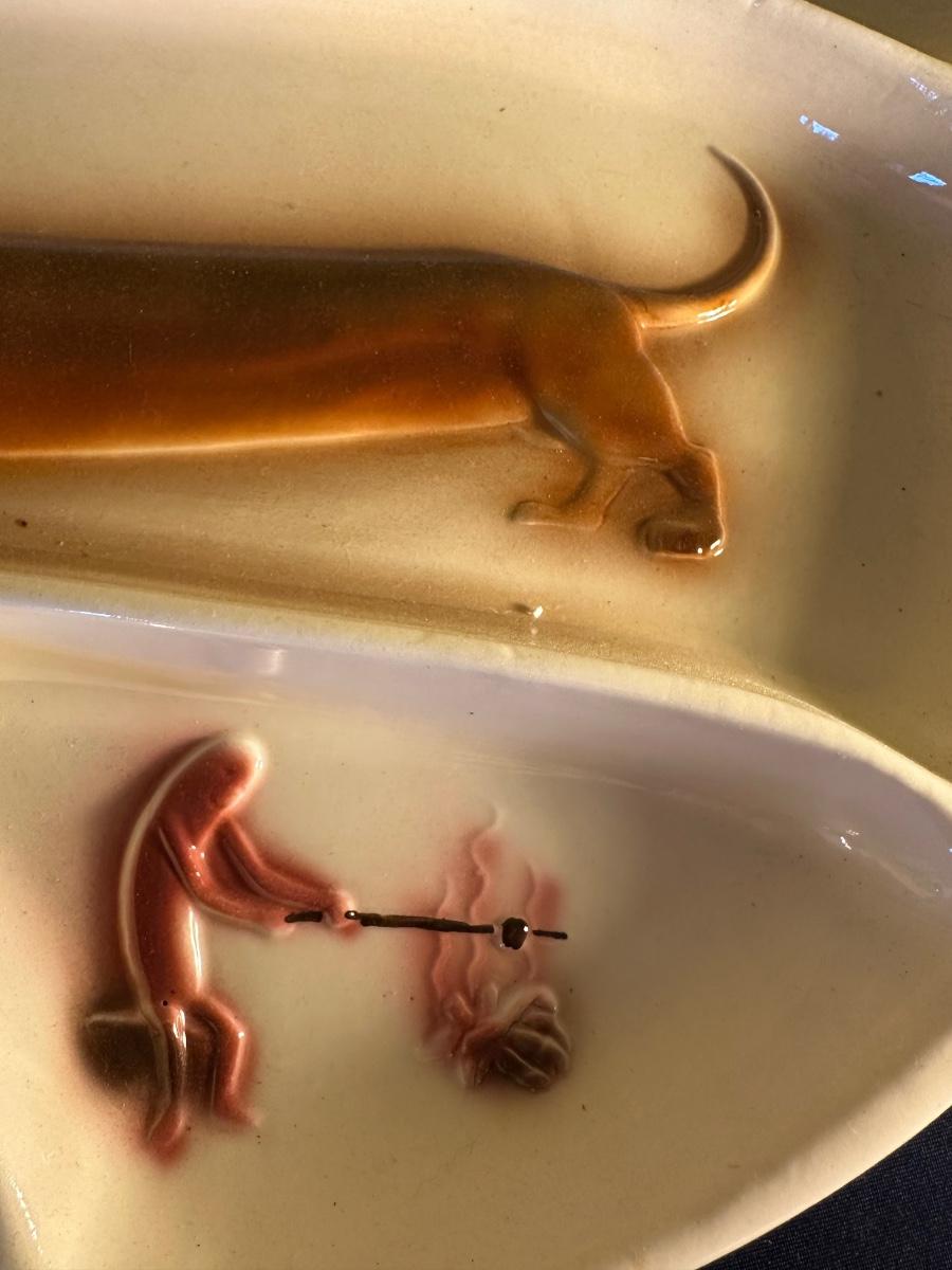 1958 LANE AND CO HOTDOG PLATTER WITH DACHSHUND 20X15 CALIFORNIA USA