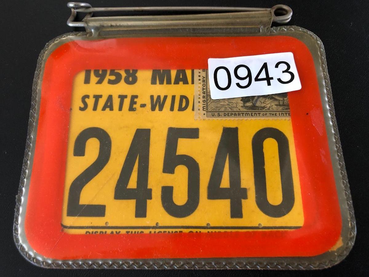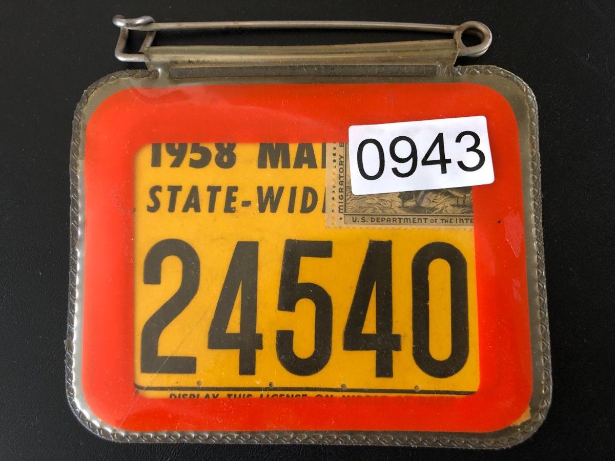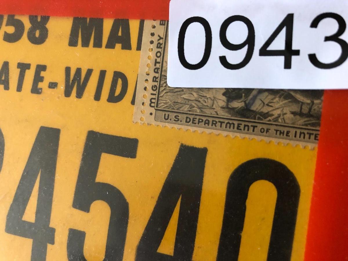 1958 MD State Wide Hunting License w/Stamp Lot #0943