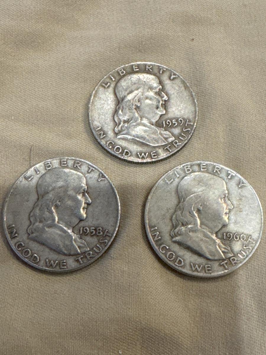 1958-1960 Benjamin Franklin U S 50c .999 Silver coins
