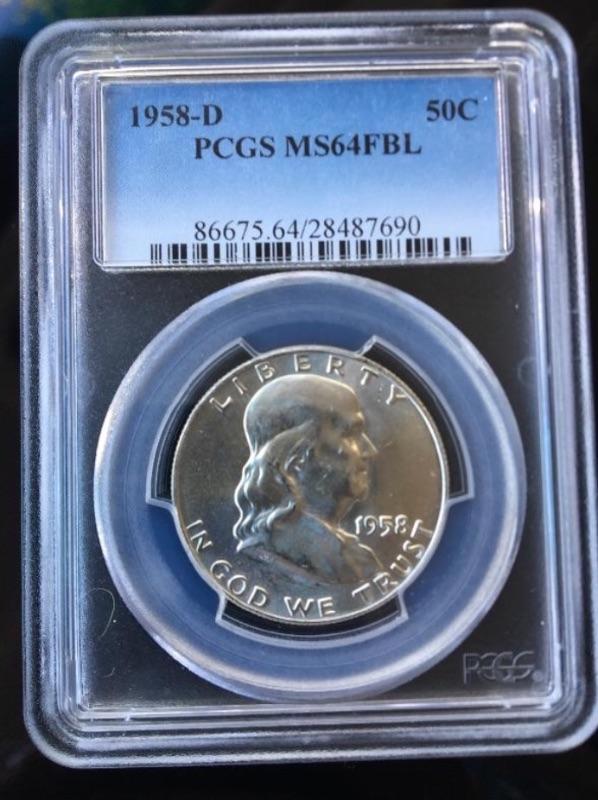 Free Shipping! Graded “Mint State” .50 cent Coin from 1958. PCGS MS64. No pick up for this item. Shipping only. Free within the US.