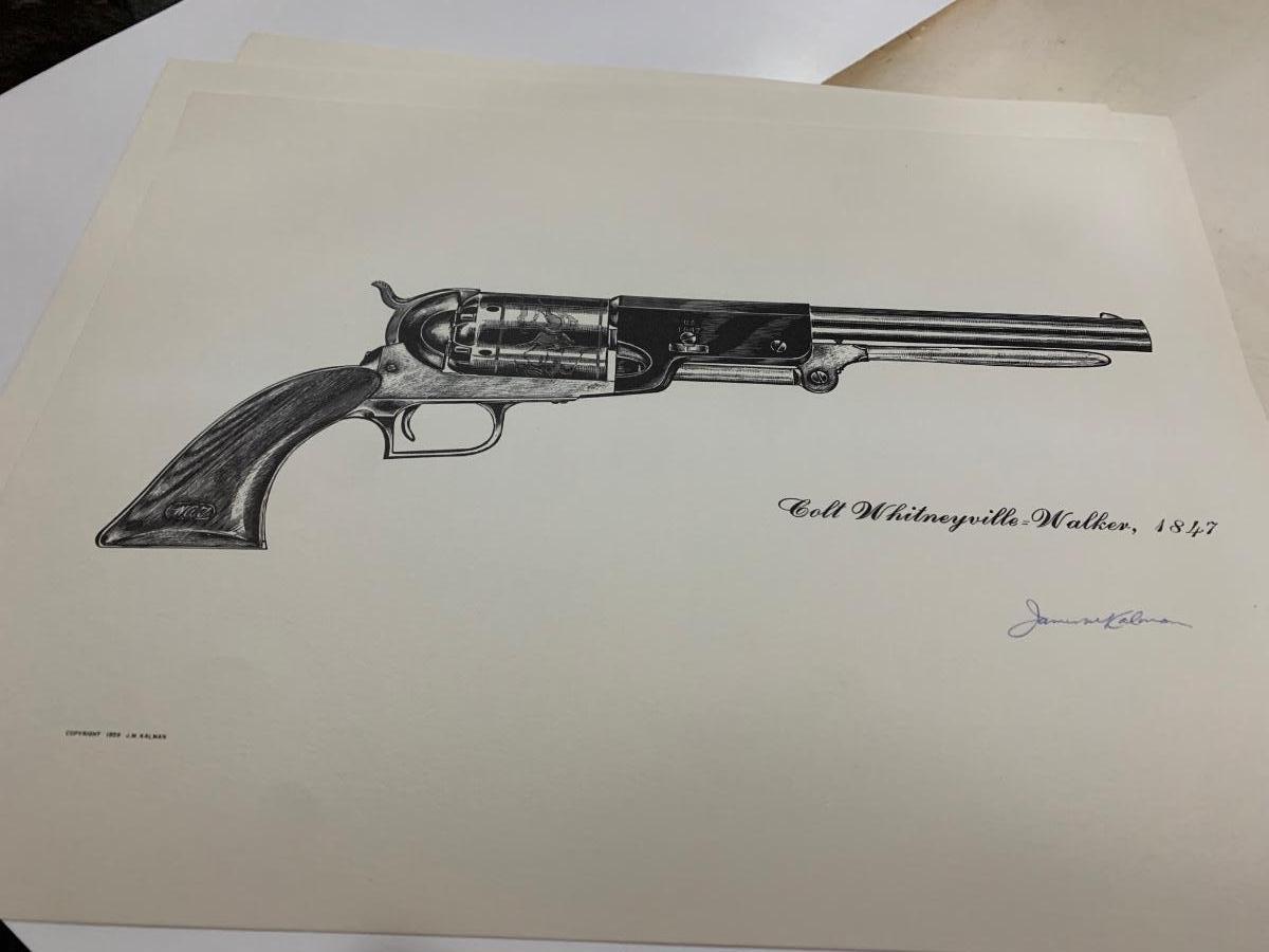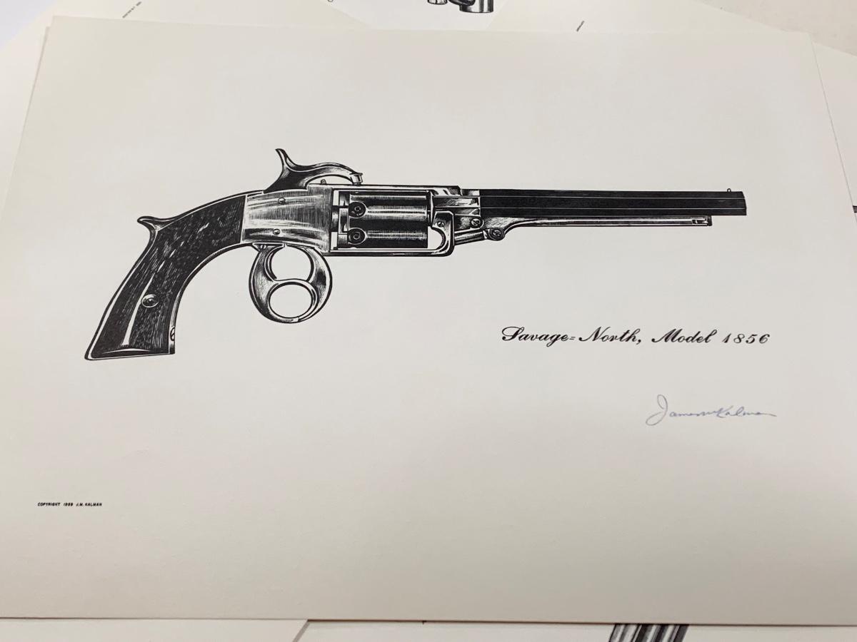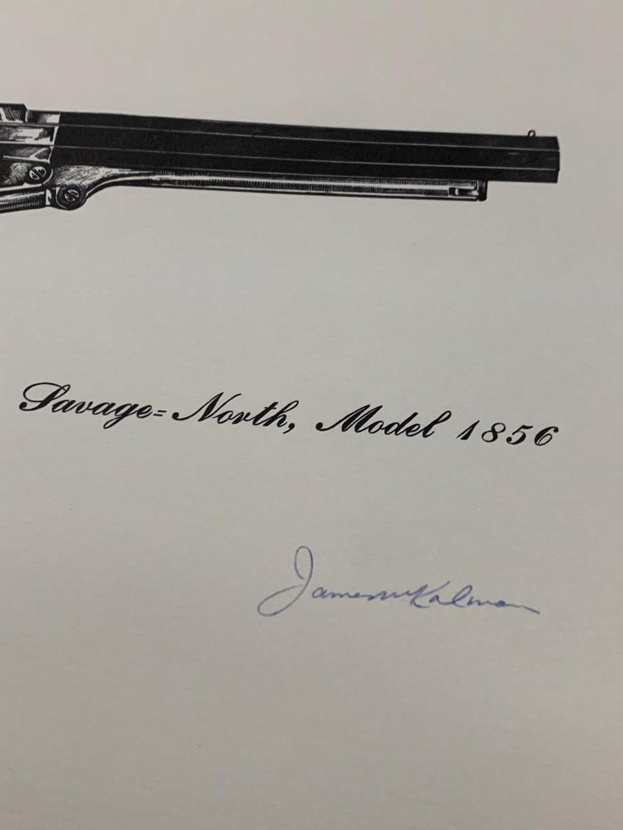 1959 Antique Revolver Print Signed James M Kalman Savage Walker Colt more Near mint