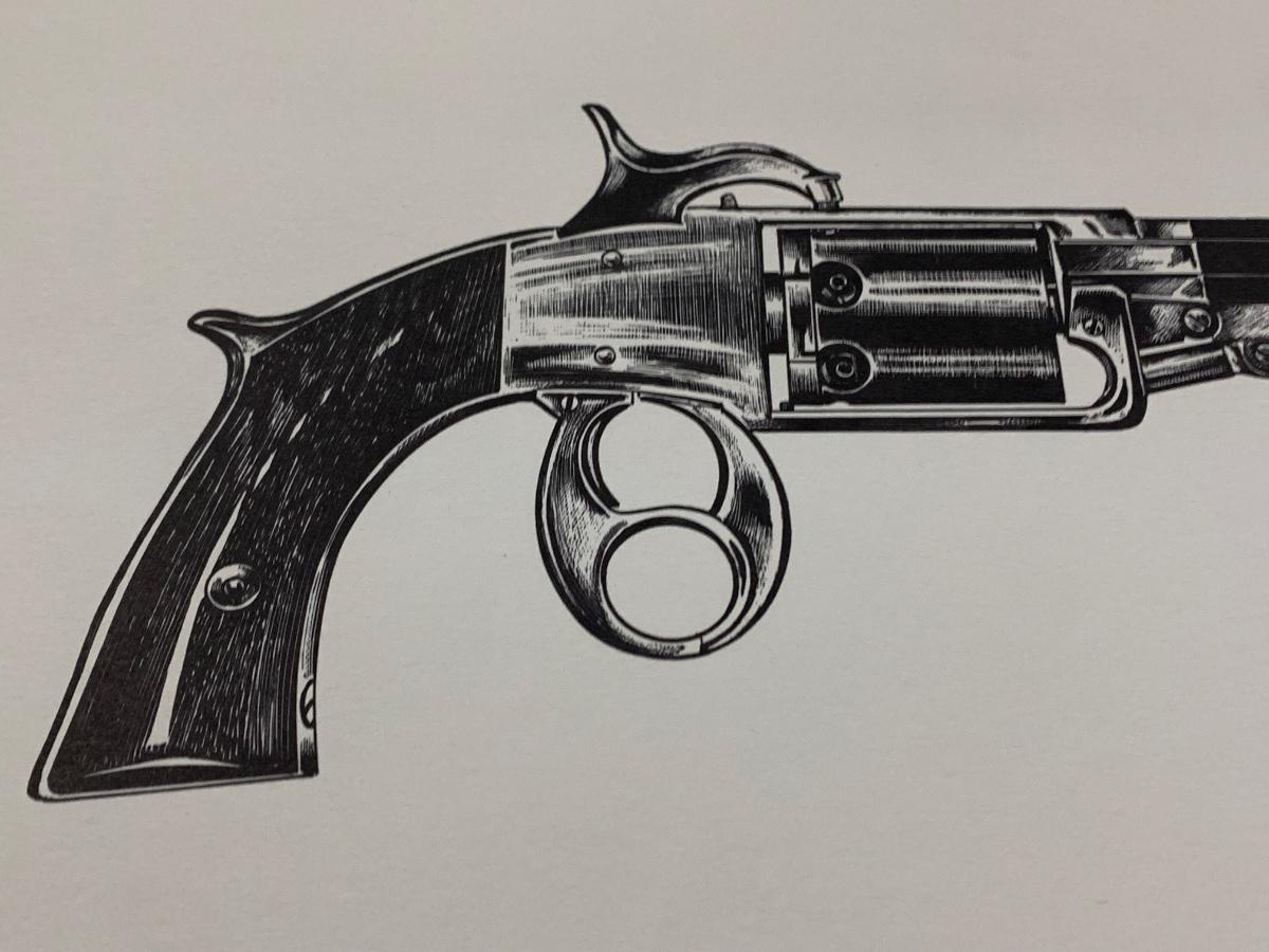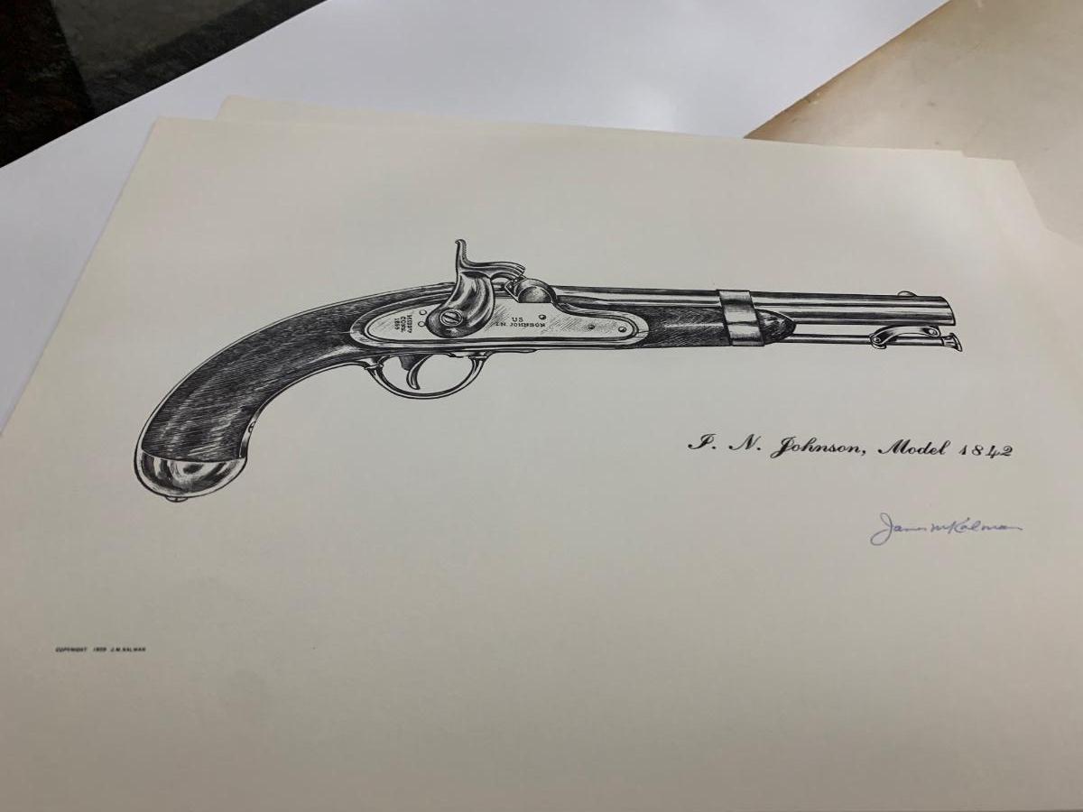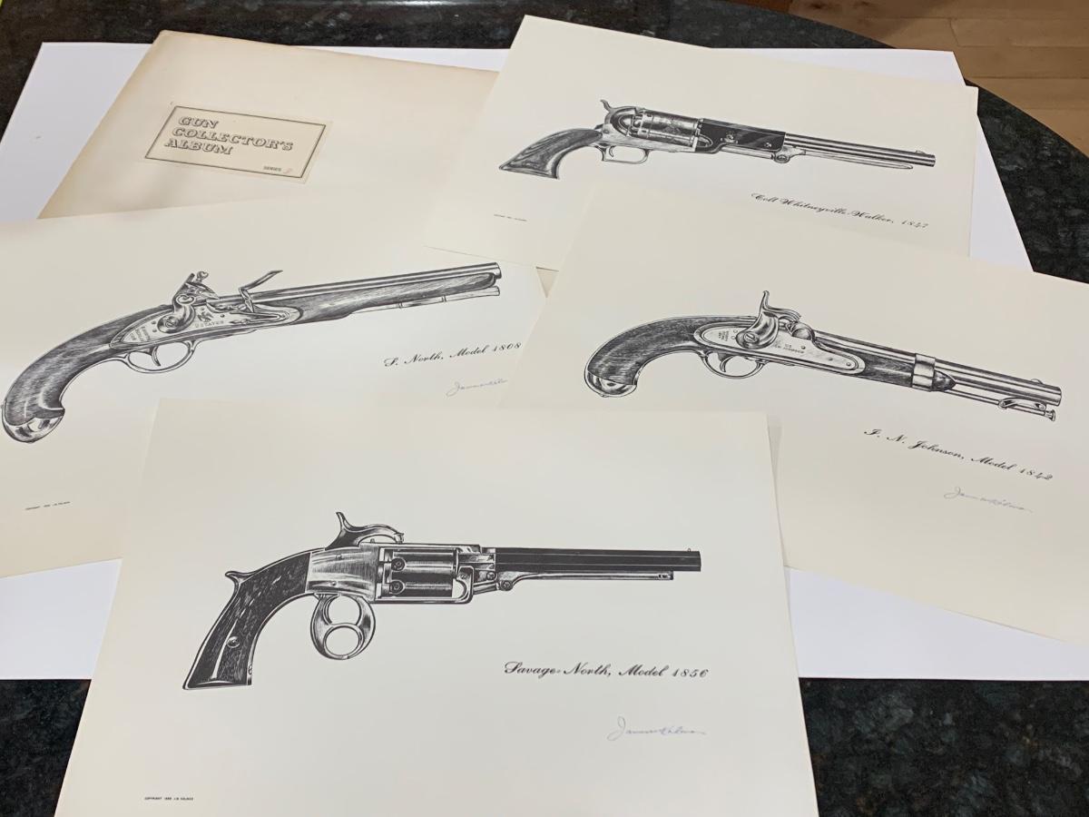 1959 Antique Revolver Print Signed James M Kalman Savage Walker Colt more Near mint