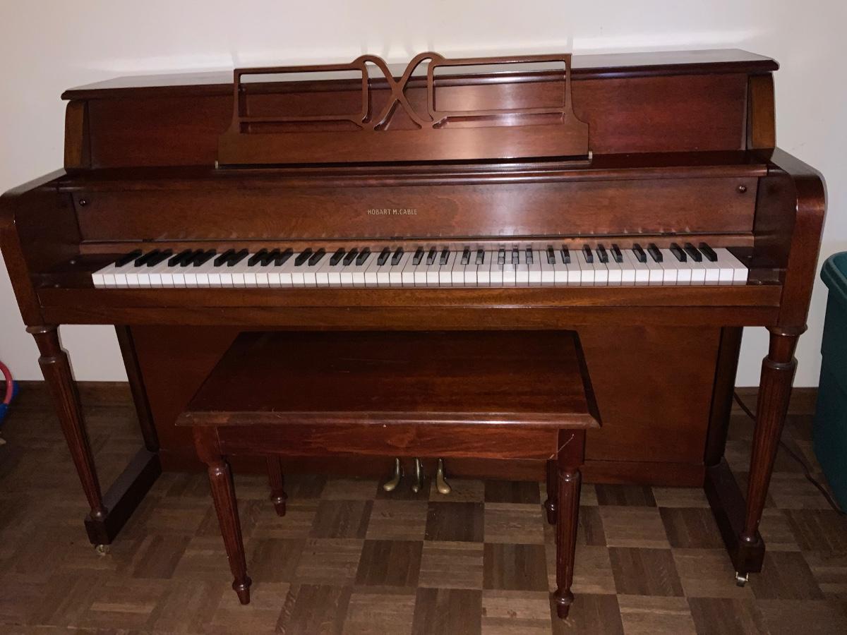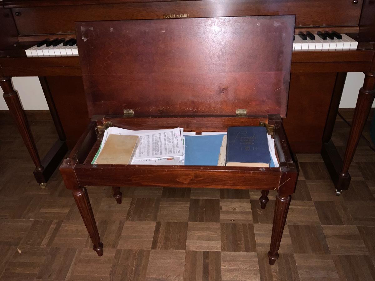 Hobart M Cable BEAUTIFUL Piano 58 x 40 x 23 with matching bench And original bill of sale. Also included is some antique sheets of music that were in the bench. Buyer, please make note that the Item is very heavy and will require many people to move. Note* there are a few surface scratches on the bench.