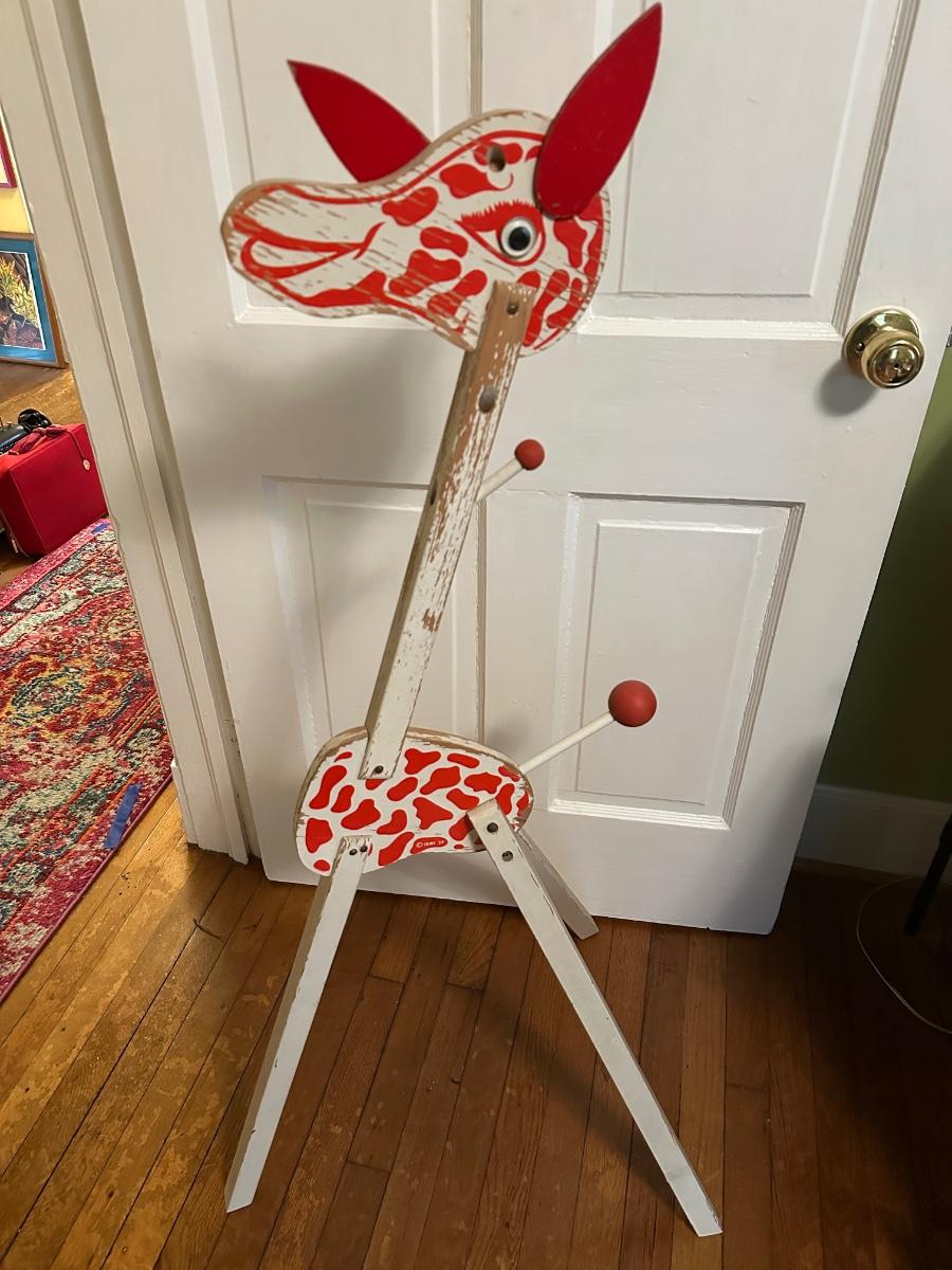 1959 IRMI GIRAFFE COAT RACK CHILD 48" TALL 22" WIDE MISSING A COUPLE DOWELS AS PICTURED