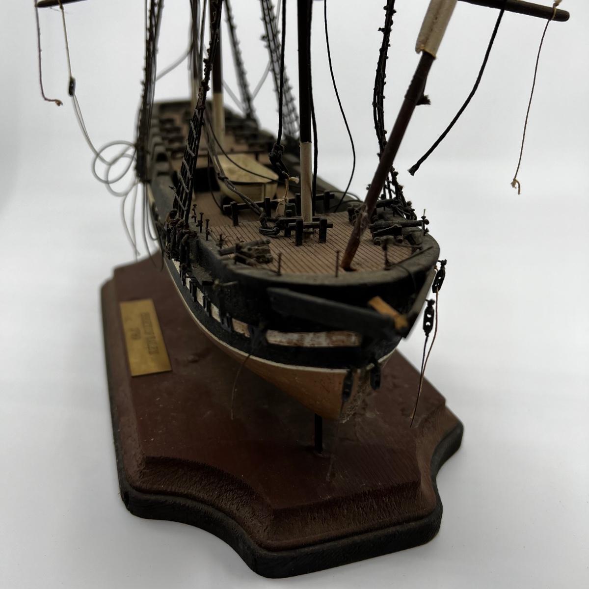 This is a model of the USS Essex 1799 ship. This ship was hit by a whale which inspired famous novel Moby Dick.