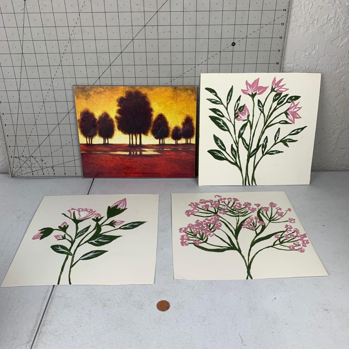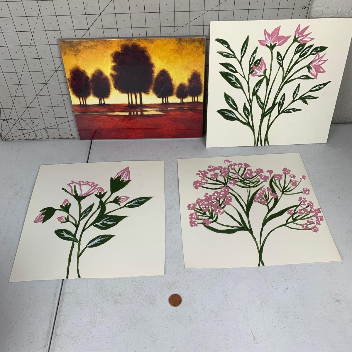 #196 Flower Paintings & Tree Print