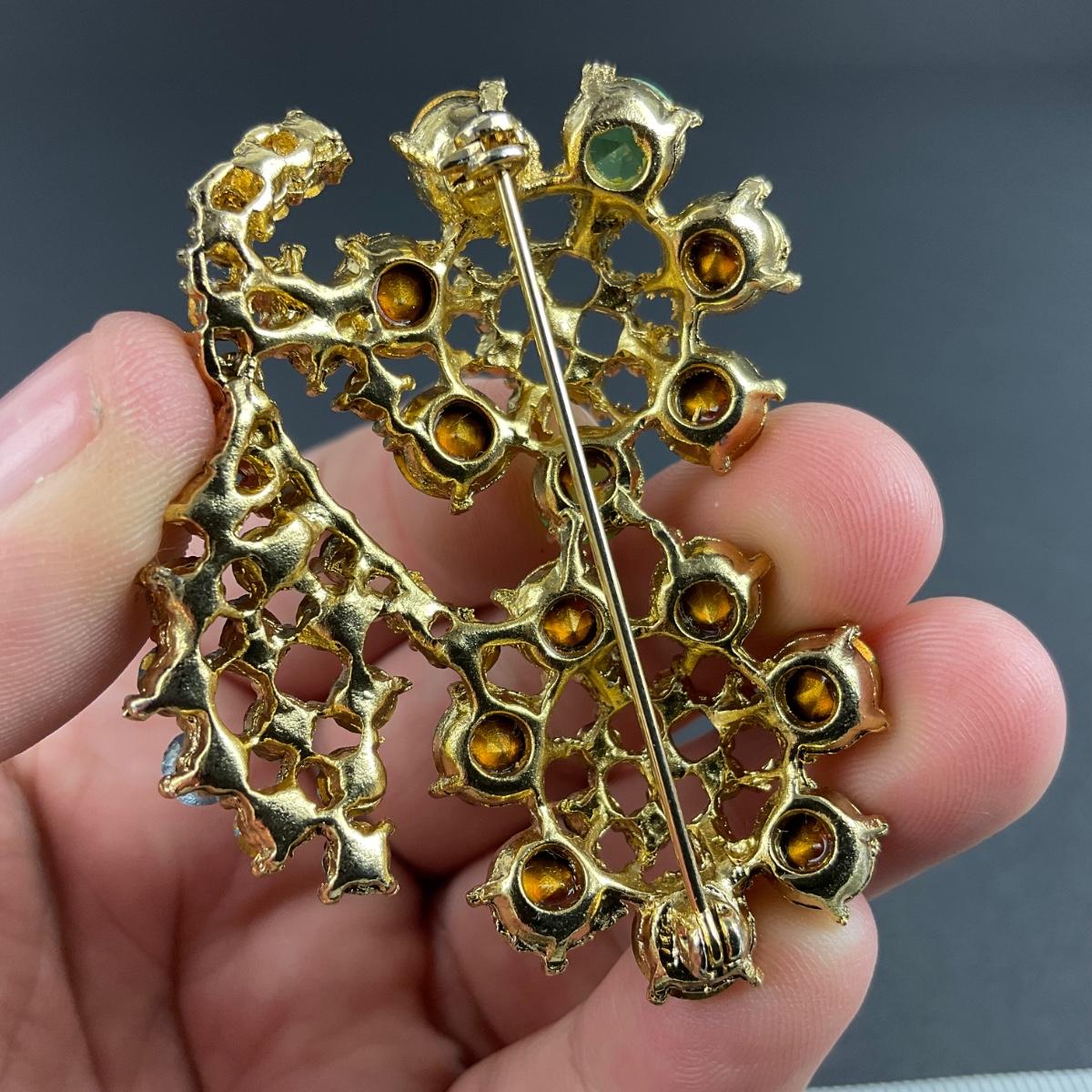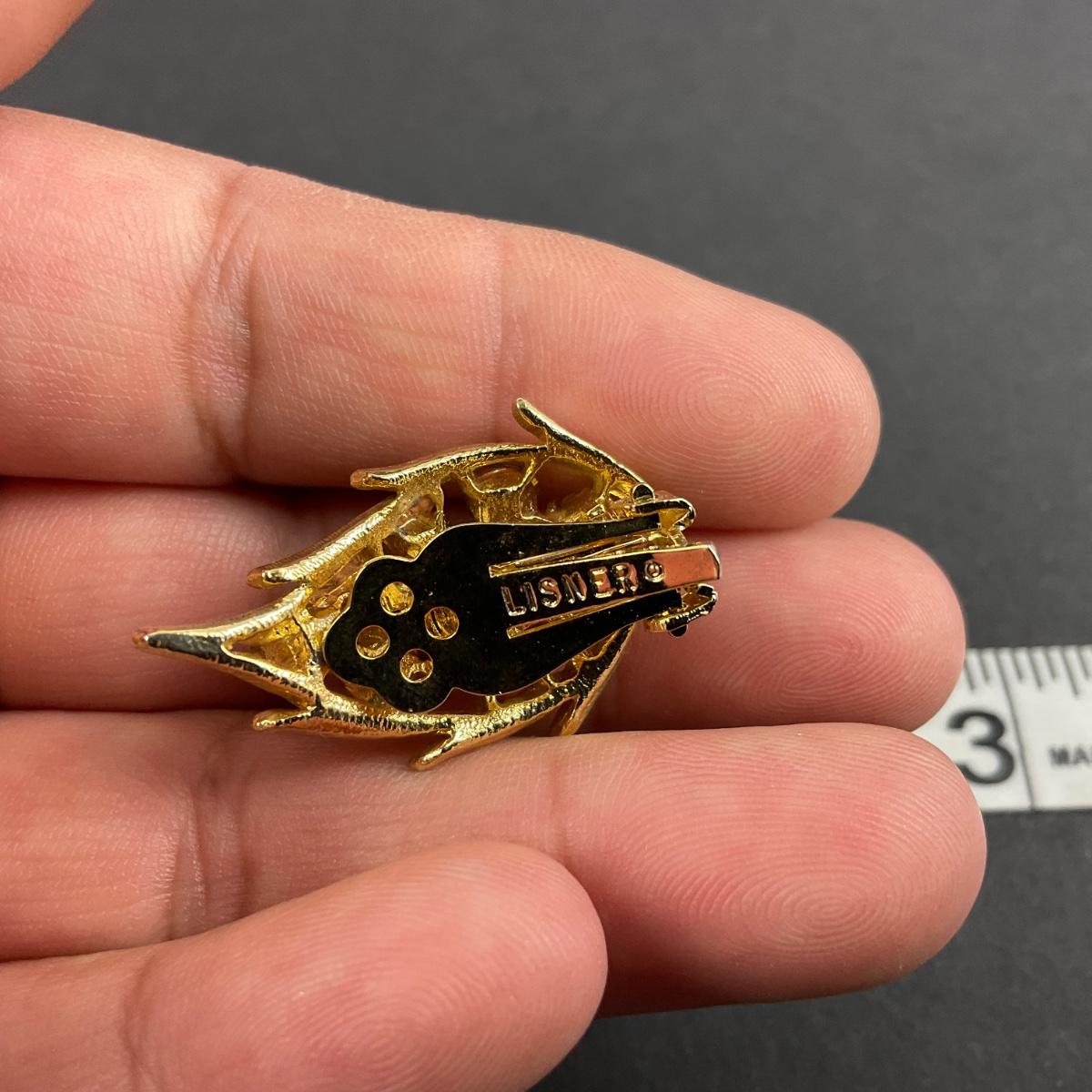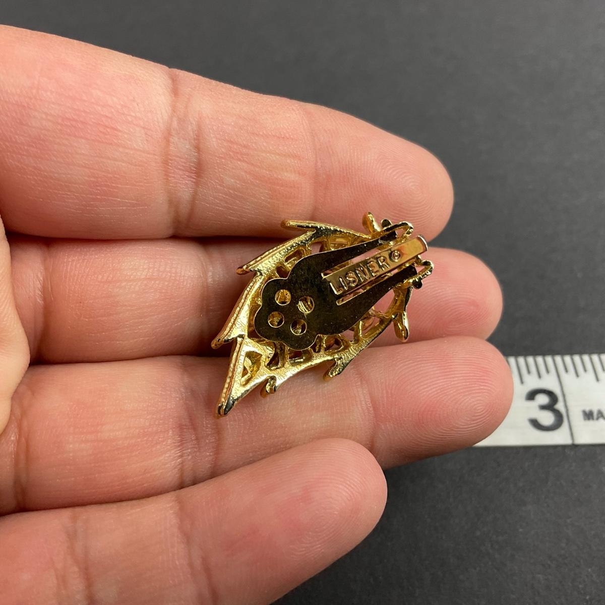 One vintage Lisner green and blue rhinestone brooch and earrings. Some rhinestones are Uranium glass. Please see photos for details and condition. Any condition statement is given as a courtesy to a client, is an opinion, and should not be treated as a statement of fact. Reference to condition written, oral or within a condition report shall not be regarded as a full account of condition and may not include all defects, alterations, or restorations. Absence of a condition report does not imply a lot is flawless or lacking imperfections or damage. Katherine’s Auction & Appraisal Service shall have no responsibility for any error or omission. Returns shall not be accepted on the basis of condition. ::: Shipping is available on this lot. If you require shipping you must let us know at the close of the auction. We will coordinate with you after the item has been won. Shipping fees will include insurance up to or exceeding the value of all items being mailed. If you have any questions regarding this lot please contact the auctioneer either via this website, by direct email or by phone. PICK UP TIMES and other important information can be found in the TERMS and DESCRIPTION of the auction. Please take a look for pertinent information. Thanks!