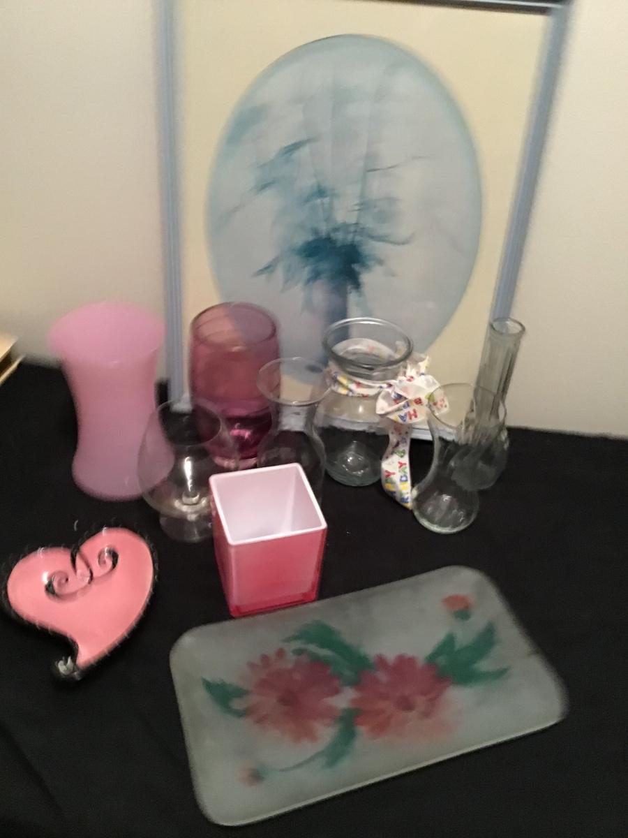 196 - Misc. Vases, Picture, Tray