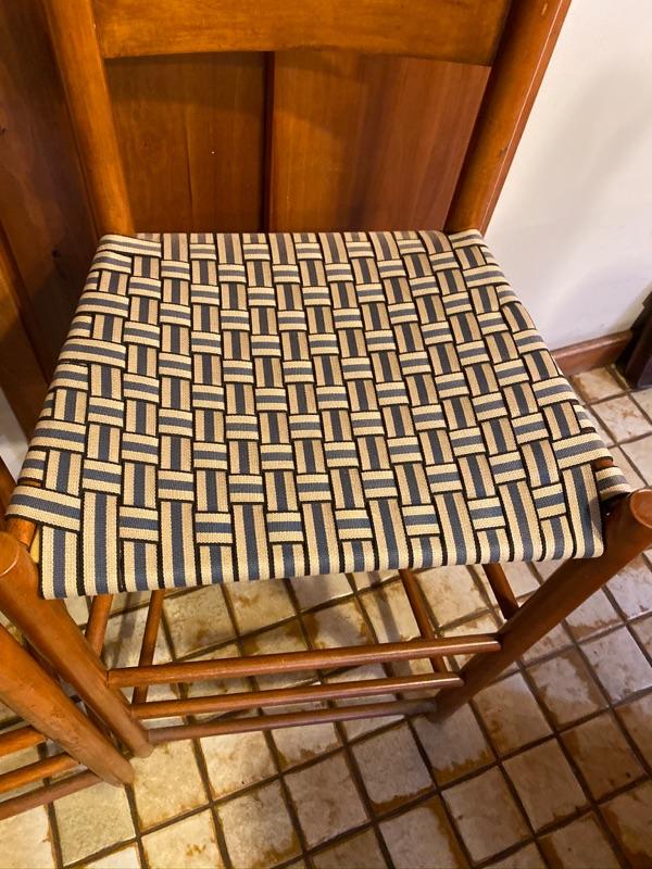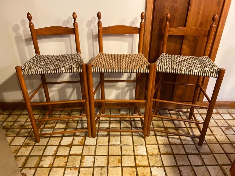 Two have identical weave seats, 1 is different, measuring 39” tall x 25.75” seat height x 18.75” wide x 14” deep