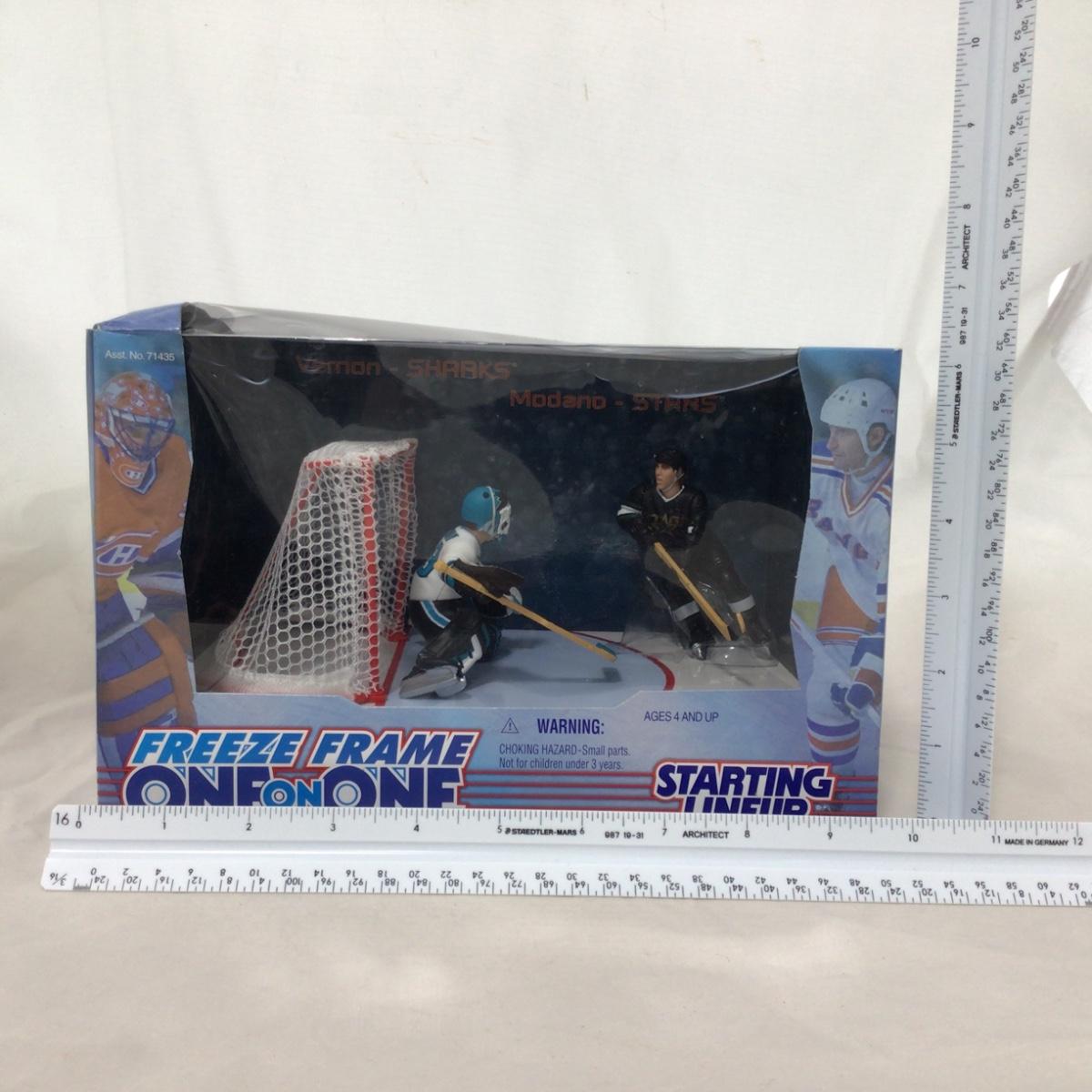 One Hockey starting lineup freeze frame figure. Please see photos for details and condition. ::: Shipping is available on this lot. If you require shipping you must let us know at the close of the auction. We will coordinate with you after the item has been won. Shipping fees will include insurance up to or exceeding the value of all items being mailed. If you have any questions regarding this lot please contact the auctioneer either via this website, by direct email or by phone. PICK UP TIMES and other important information can be found in the TERMS and DESCRIPTION of the auction. Please take a look for pertinent information. Thanks!