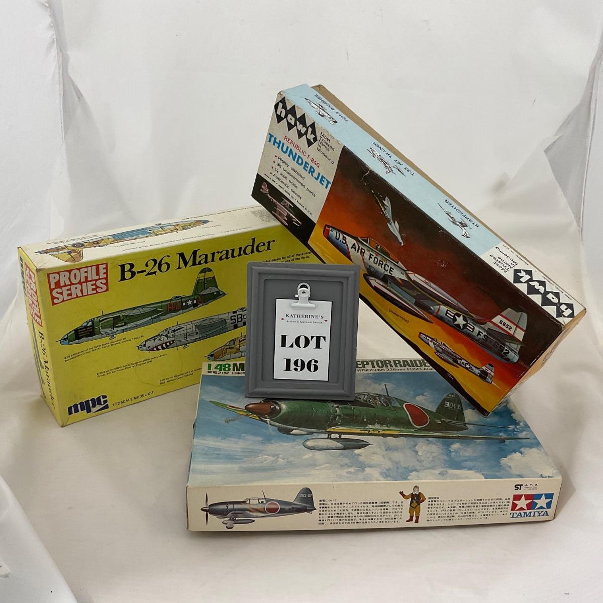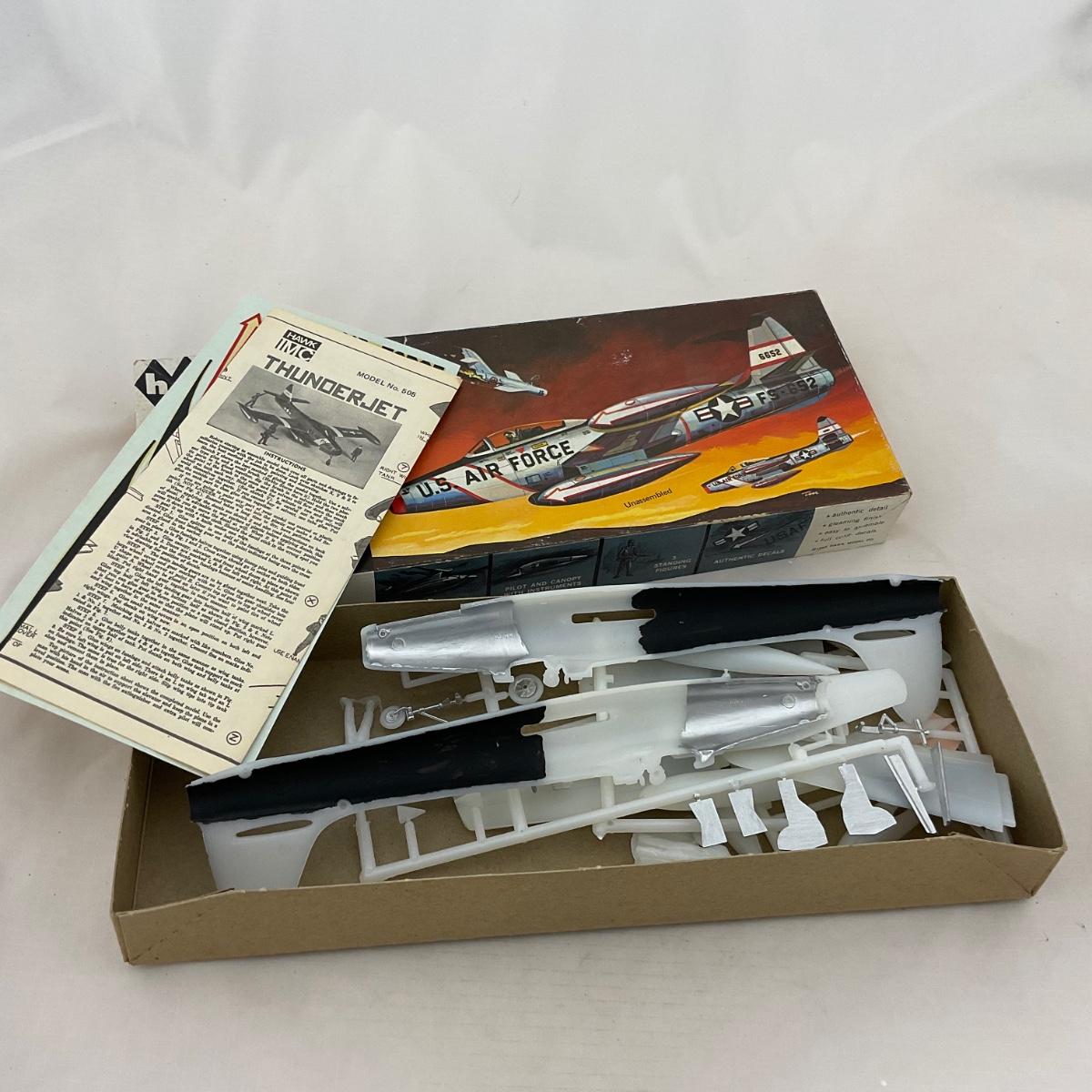 Three vintage military air craft model kits. All kits appear to be complete however not guaranteed. Please see photos for details and condition. ::: Shipping is available on this lot. If you require shipping you must let us know at the close of the auction. We will coordinate with you after the item has been won. Shipping fees will include insurance up to or exceeding the value of all items being mailed. If you have any questions regarding this lot please contact the auctioneer either via this website, by direct email or by phone. PICK UP TIMES and other important information can be found in the TERMS and DESCRIPTION of the auction. Please take a look for pertinent information. Thanks!