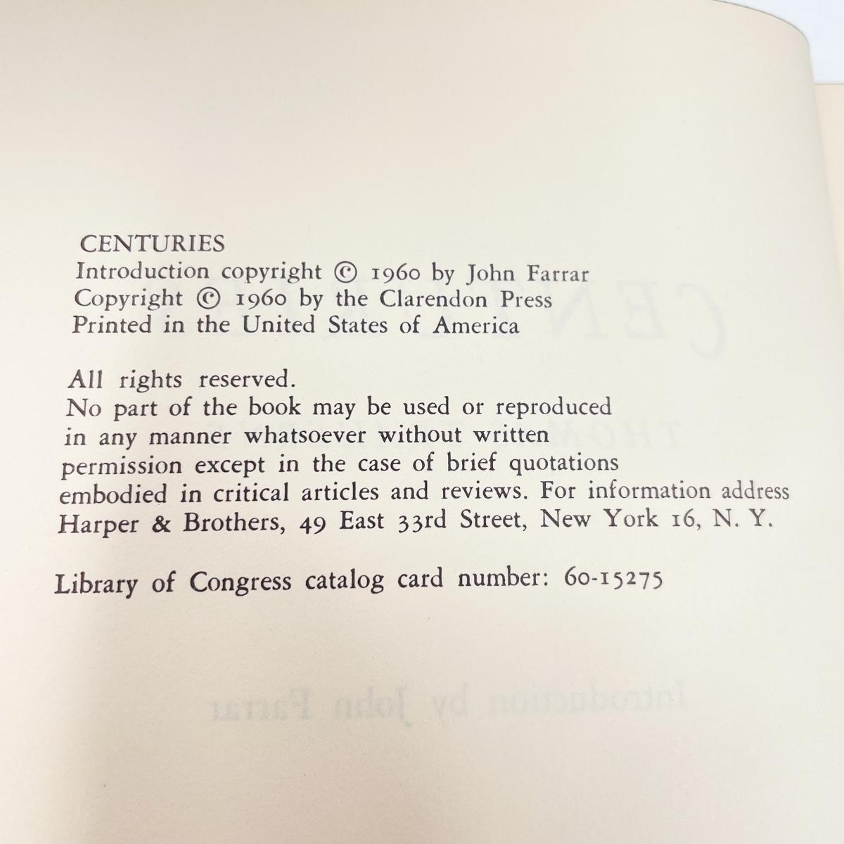 1960 “CENTURIES” BY THOMAS TRAHERNE HARDBACK BOOK