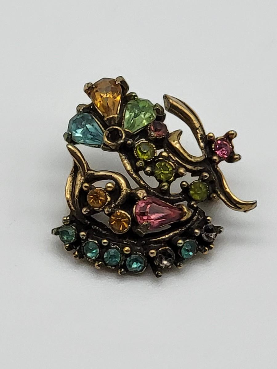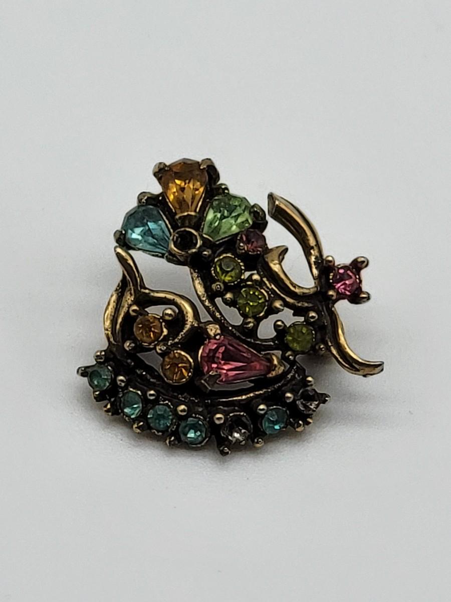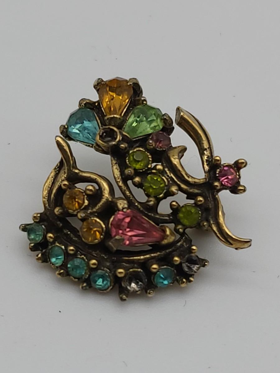 This pin is very unique. Please note it is missing 3 of the smaller stones.