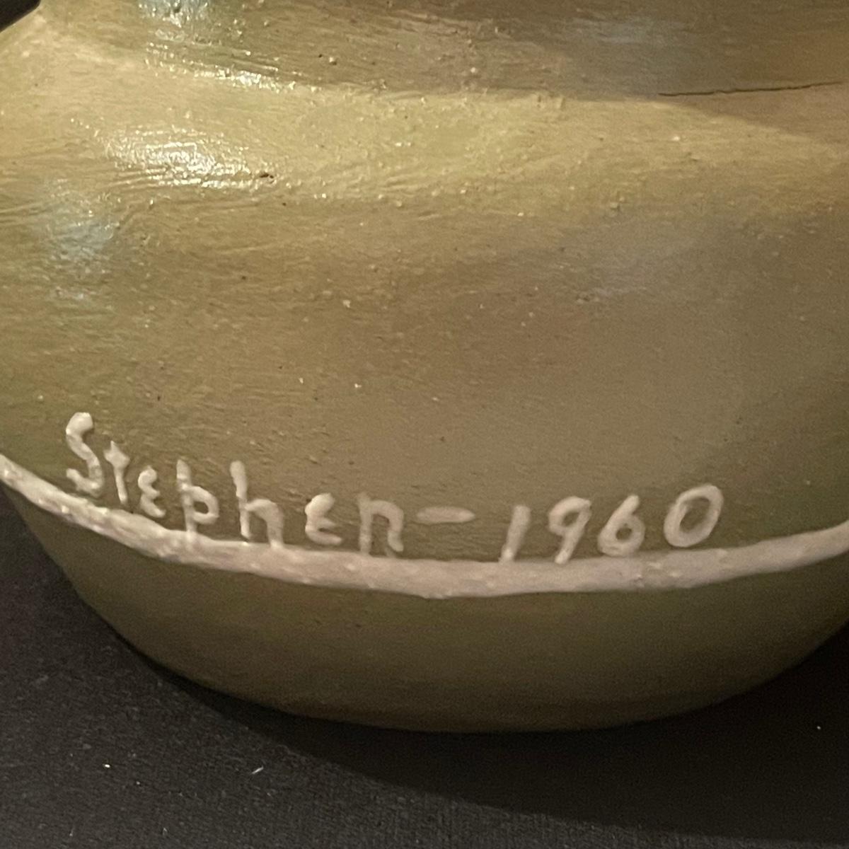 This highly collectible and sought after pottery by Walter B. Stephen’s is signed and dated 1960, the year before he passed. It is in good condition with just one crack in the base, see images. Inside appears to have a clear glaze.