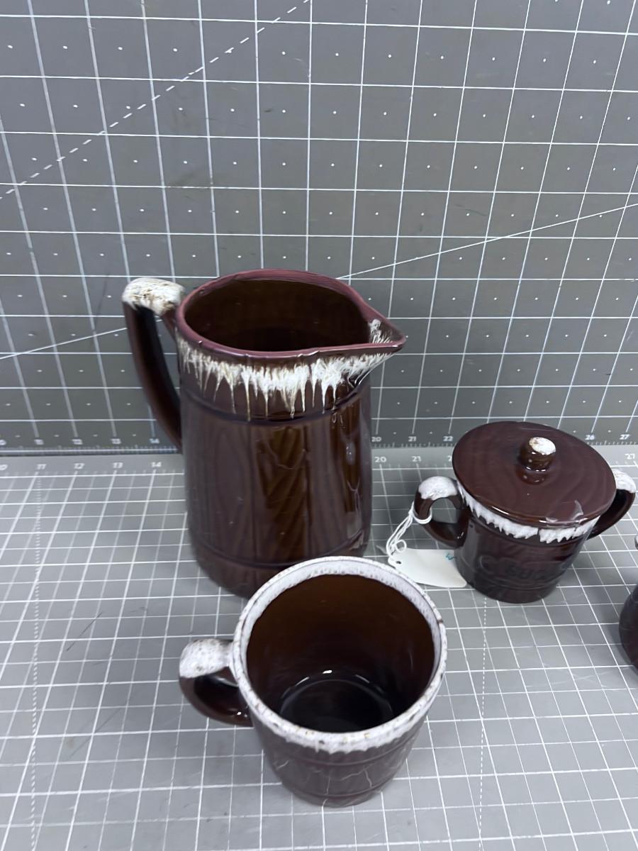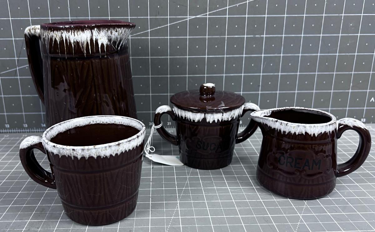 1960 Rustic Pattern: Pitcher, Cream & Sugar Plus Coffee Cup (4) pieces