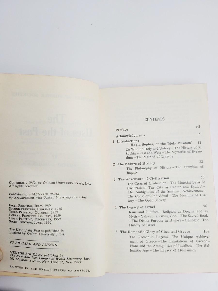 1960 THE USES OF THE PAST by HERBERT J. MULLER PAPERBACK