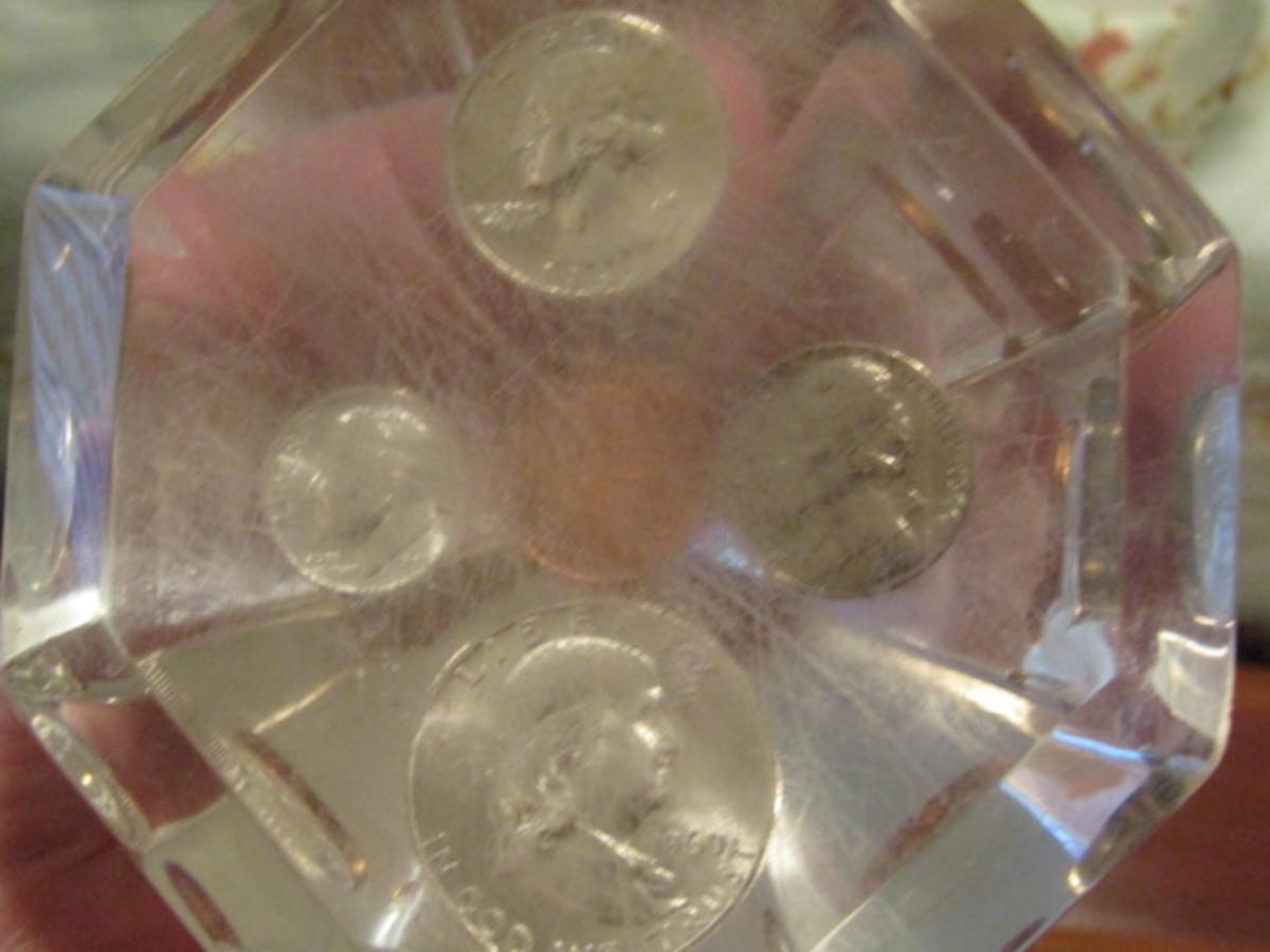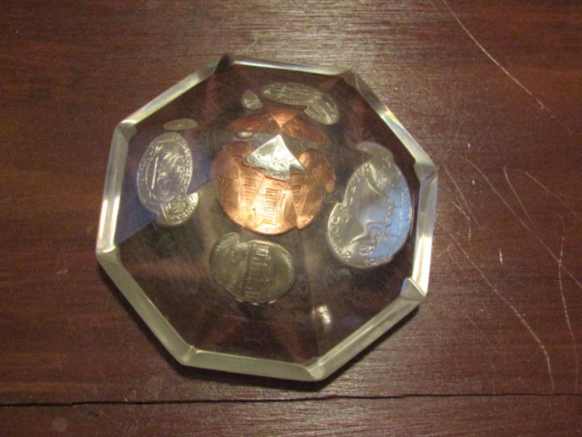 1960 US Mint Coins Encased in Lucite Diamond
