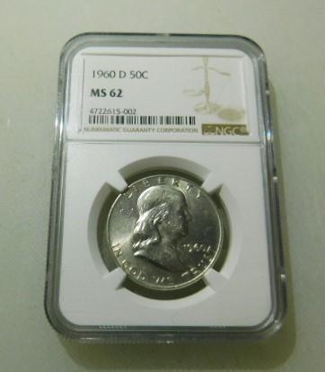 1960-D Franklin Silver Half Dollar Graded by NGC MS62