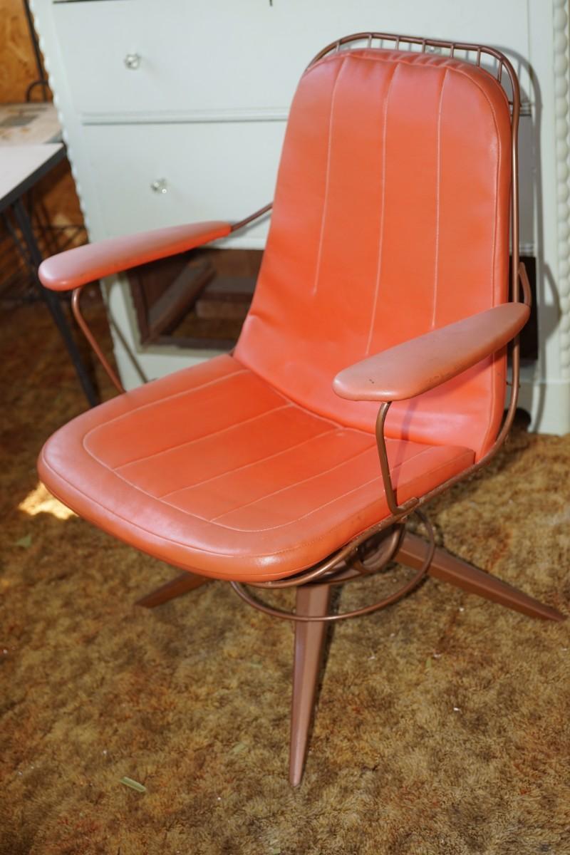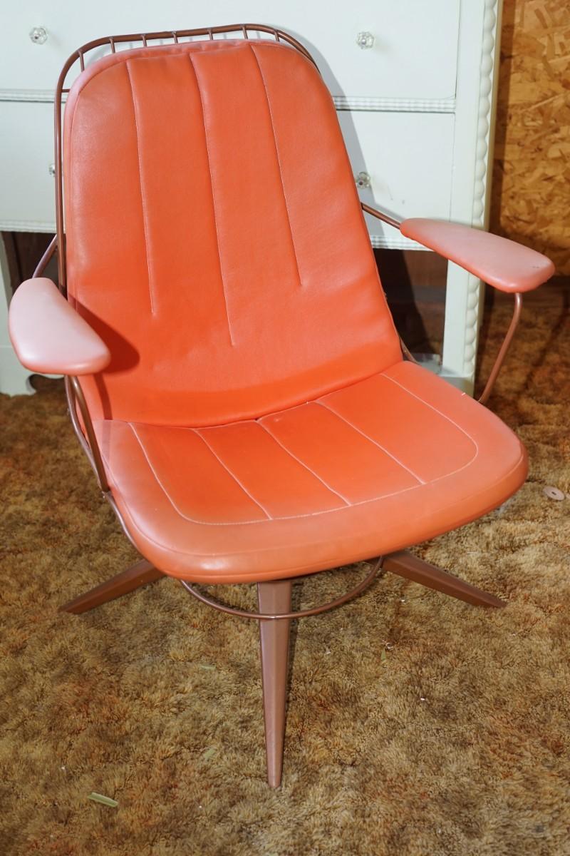 1960'S ARM CHAIR W/ ORANGE VINYL UPHOLSTERY AND TUBULER FRAME