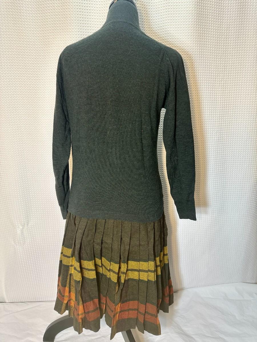 Cute and fun BOHO'ish look from the 1960's Condition is fair to good. No rips or tears but pleats need reshaping and sweater has minor balling. Priced accordingly. 100% virgin wool.